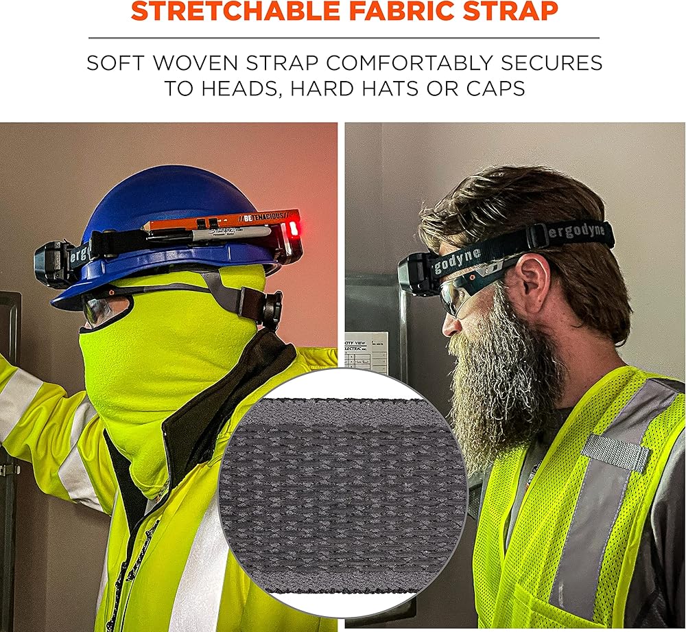 STRETCHABLE FIT - Soft woven fabric strap with gentle rubberized grip comfortably secures onto heads, hard hats or caps