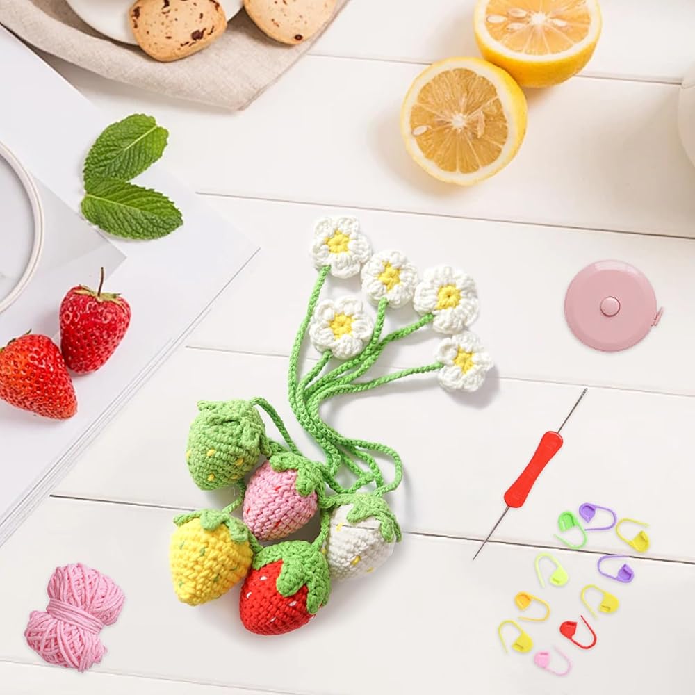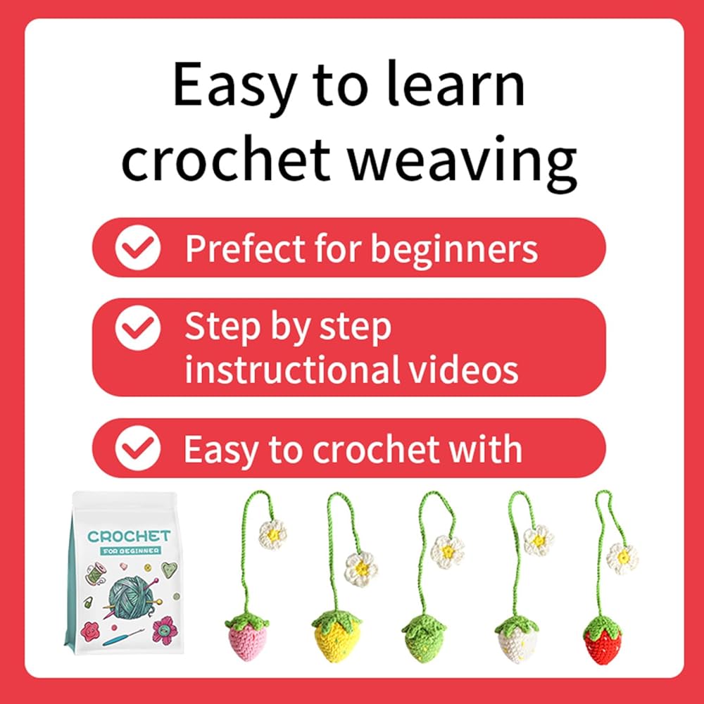 مجموعة cobinaan كروشيه للمبتدئين - مجموعة أدوات كروشيه نبات الفراولة مع دروس فيديو خطوة بخطوة، تعلم مجموعات الكروشيه للبالغين والأطفال، لوازم الحياكة DIY
