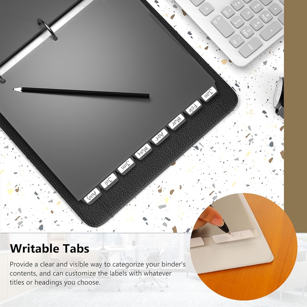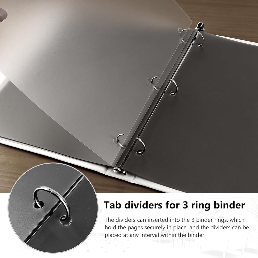 【حجم الحروف 3 فواصل حلقات】تم تصميم فواصل الصفحات هذه المكونة من 3 حلقات مع عروات لتناسب تمامًا المجلد القياسي ثلاثي الحلقات والملاحظات والمستندات والوصفات أو النسخ المطبوعة. كما أنها مصنوعة من البلاستيك القوي، لذلك فهي تدوم لفترة طويلة ومقاومة للتمزق.