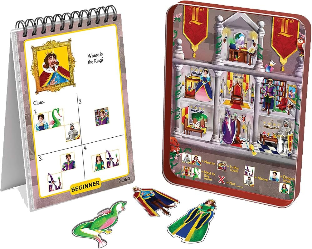 It's a Palace puzzler! The Prince is in the Library, The Dragon is next to the Queen, and the Wizard is not in the tower. So where is the king? Use deduction to discover the Regal whereabouts and solve 40 charming challenges. Think logically and you'll be rewarded royally!