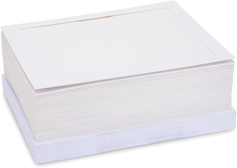 Life is full of memorable moments, and your photos are a compelling reminder of those good times. Share your memories with family and friends using these custom photo cards with envelopes designed for 5 x 7-inch images, designs, art prints, and photographs. Each blank greeting card photo frame is made from 250gsm white, non-embossed, non-glossy cardstock that can be embellished with custom artwork and designs using crayons or watercolor paints. Blank on the inside, you can add heartfelt greetings and family news, as well as a record of the time and place the photo was taken and the names of the people in the picture. Measuring 5.5 x 7.8 inches, each blank photo card fits snugly in its accompanying envelope made from 120gsm paper. The paper photo frames 5x7 have 0.5-inch top and bottom borders and 0.6-inch borders on the left and right sides, leaving a large 4.5 x 6.5-inch window to view the image while holding the picture firmly in place. Each order includes 36 white photo insert cards and 36 white, gummed envelopes.