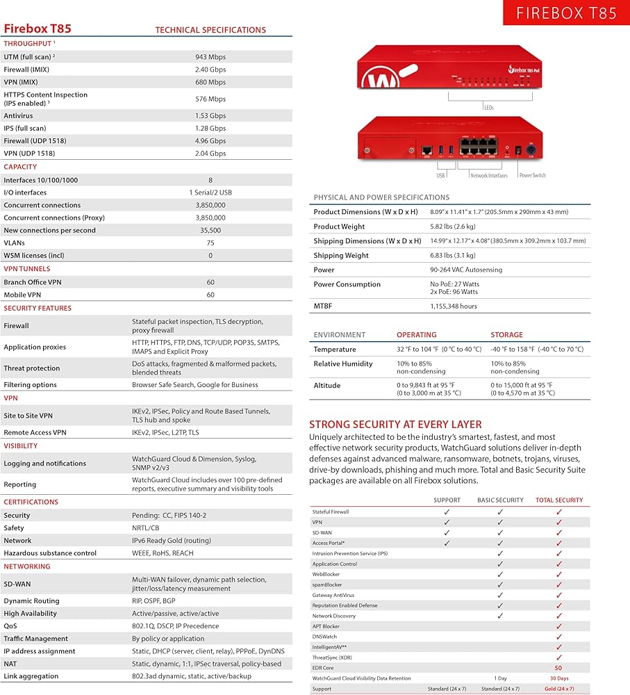 WatchGuard Firebox T85-PoE مع دعم قياسي لمدة عام واحد (الولايات المتحدة) (WGT85001-US)