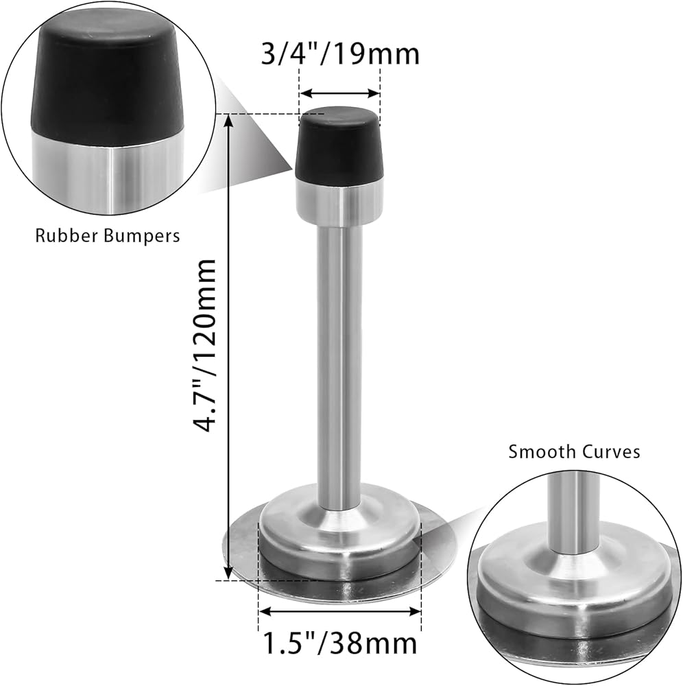 Solid Quality: Made of solid stainless steel, the wall mounted door stopper is anti-rust and durable. Featured with rubber bumpers tip, the screw door bumper helps protect walls and doors.