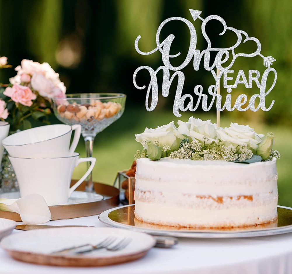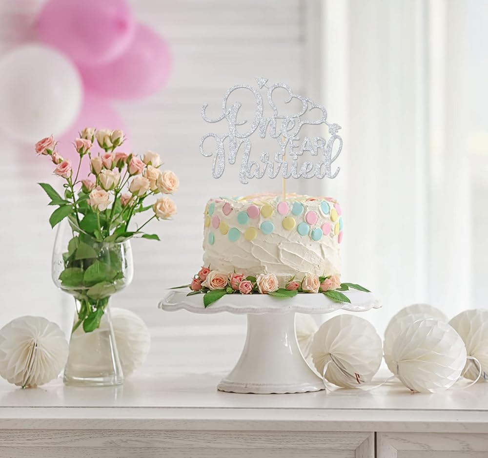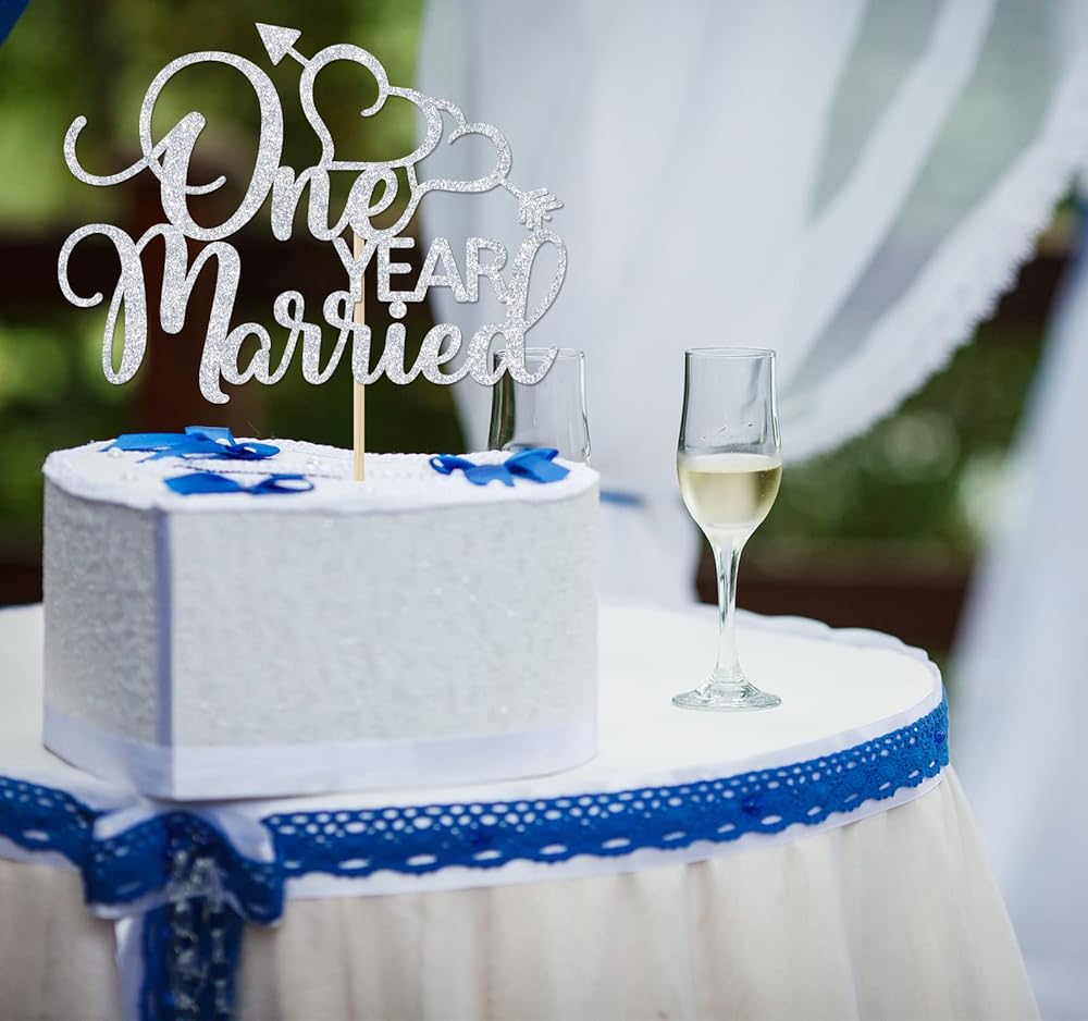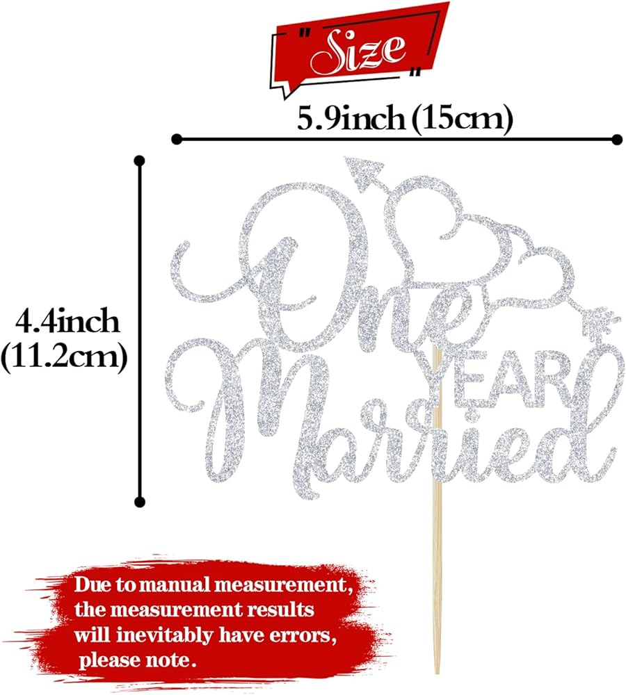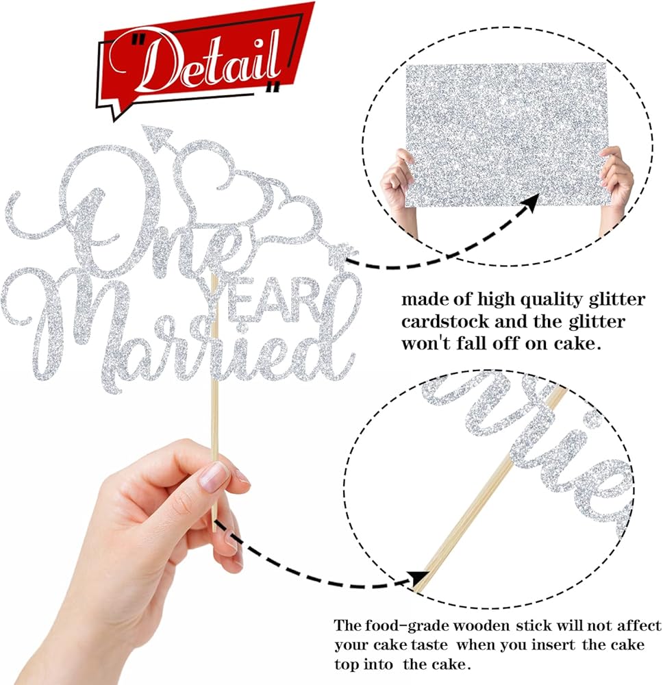🐷What's Included:You will get 1 piece of silver glitter "One Year Married" cake topper comes with a hard cardboard packaging for maximum protection.