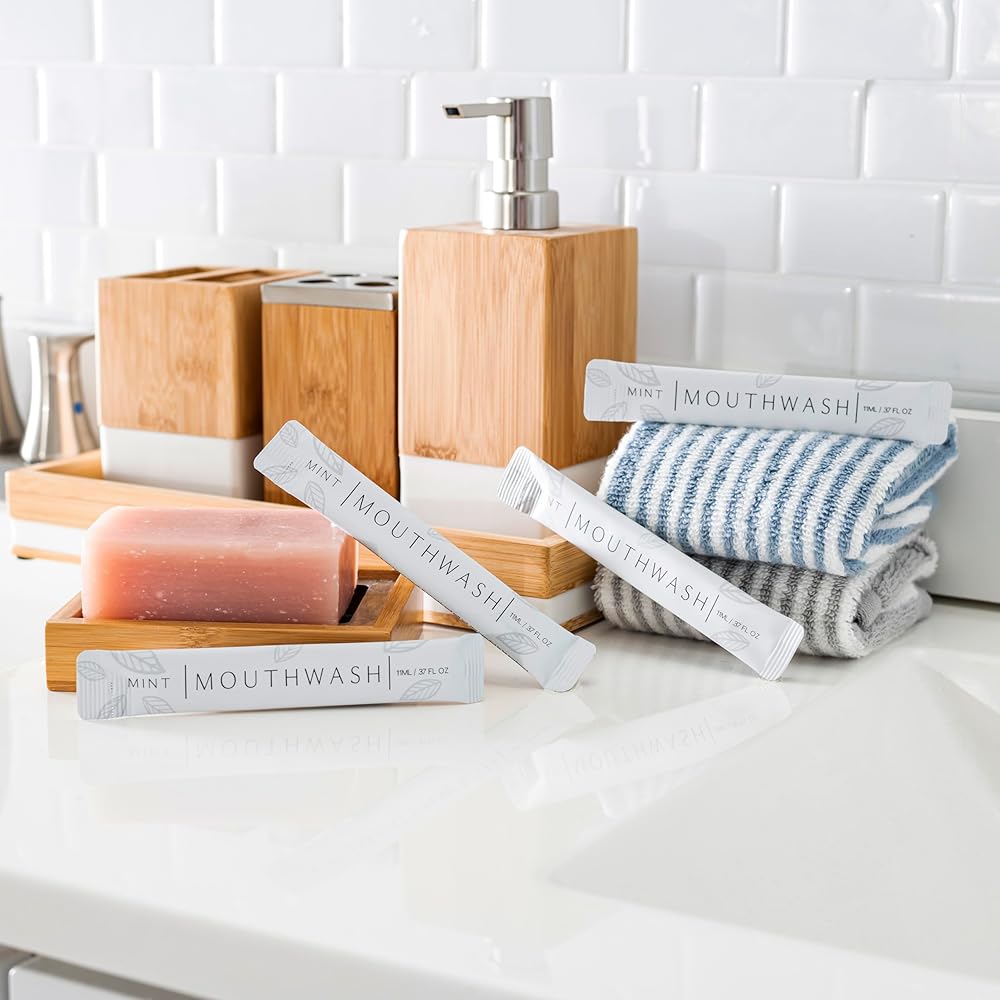 ELEVATE YOUR GUEST EXPERIENCE: Looking for an upscale amenity for your guests? Look no further than the GMW Collection Travel Mouthwash Packets! Its compact size and streamlined shape make it portable, enabling you and your guests to experience luxurious freshness anywhere. Delight your guests and make them feel appreciated!