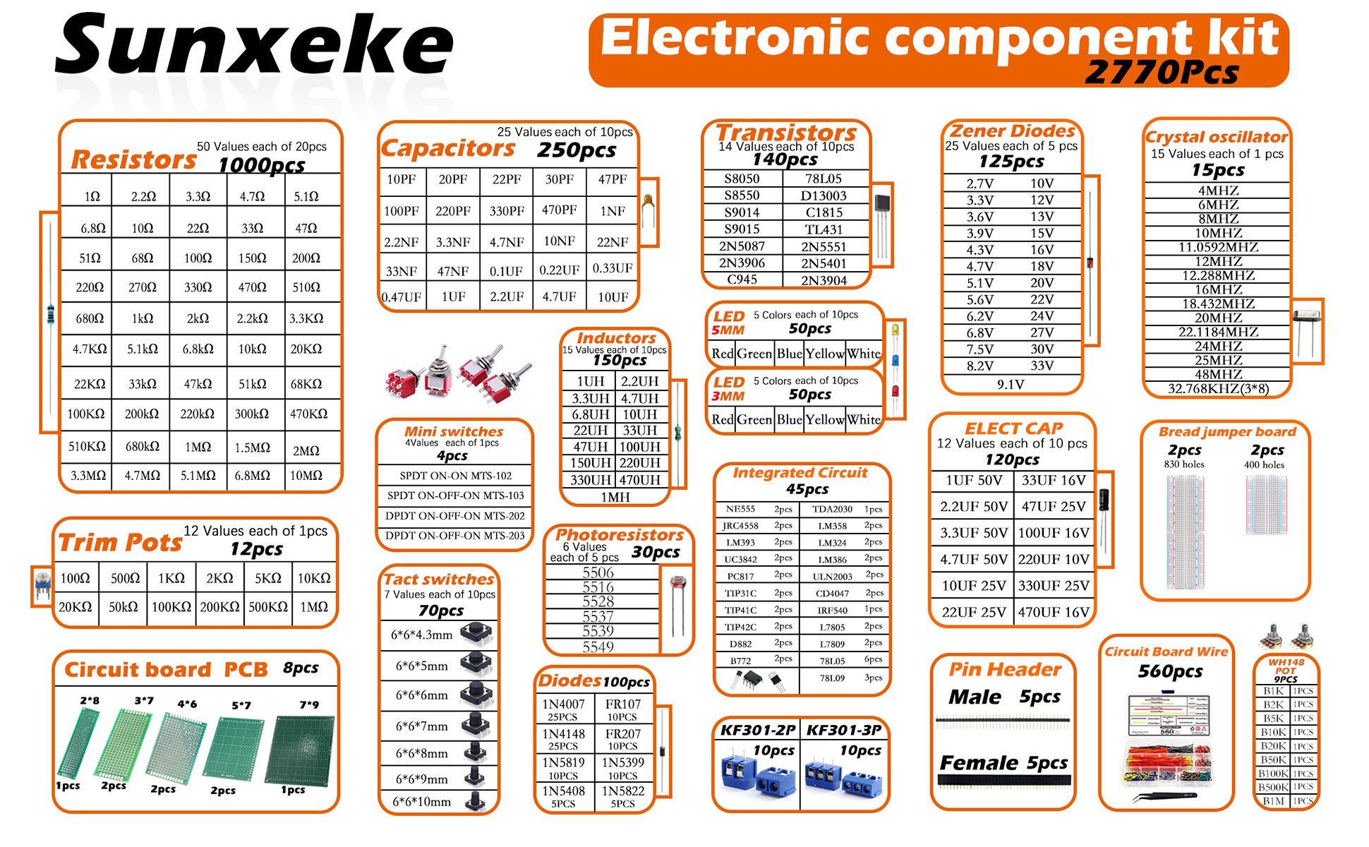 - محتوى المنتج: مجموعة مكونات إلكترونية 2770 قطعة