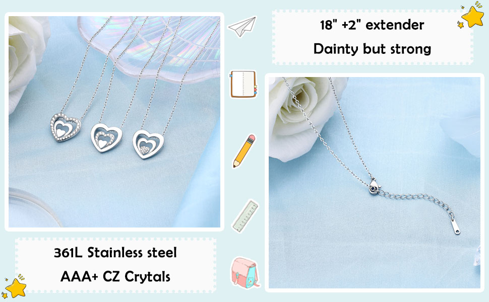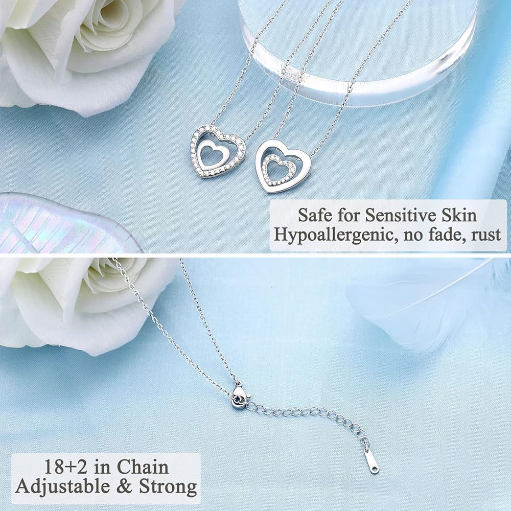 【حجم قابل للتعديل】- حجم قلادة القلب: 0.7 * 0.75 بوصة، طول السلسلة 18 بوصة + 2 بوصة. السلسلة أنيقة ولكنها قوية، ولن تنكسر بسهولة، وتناسب النساء والفتيات بشكل مثالي.