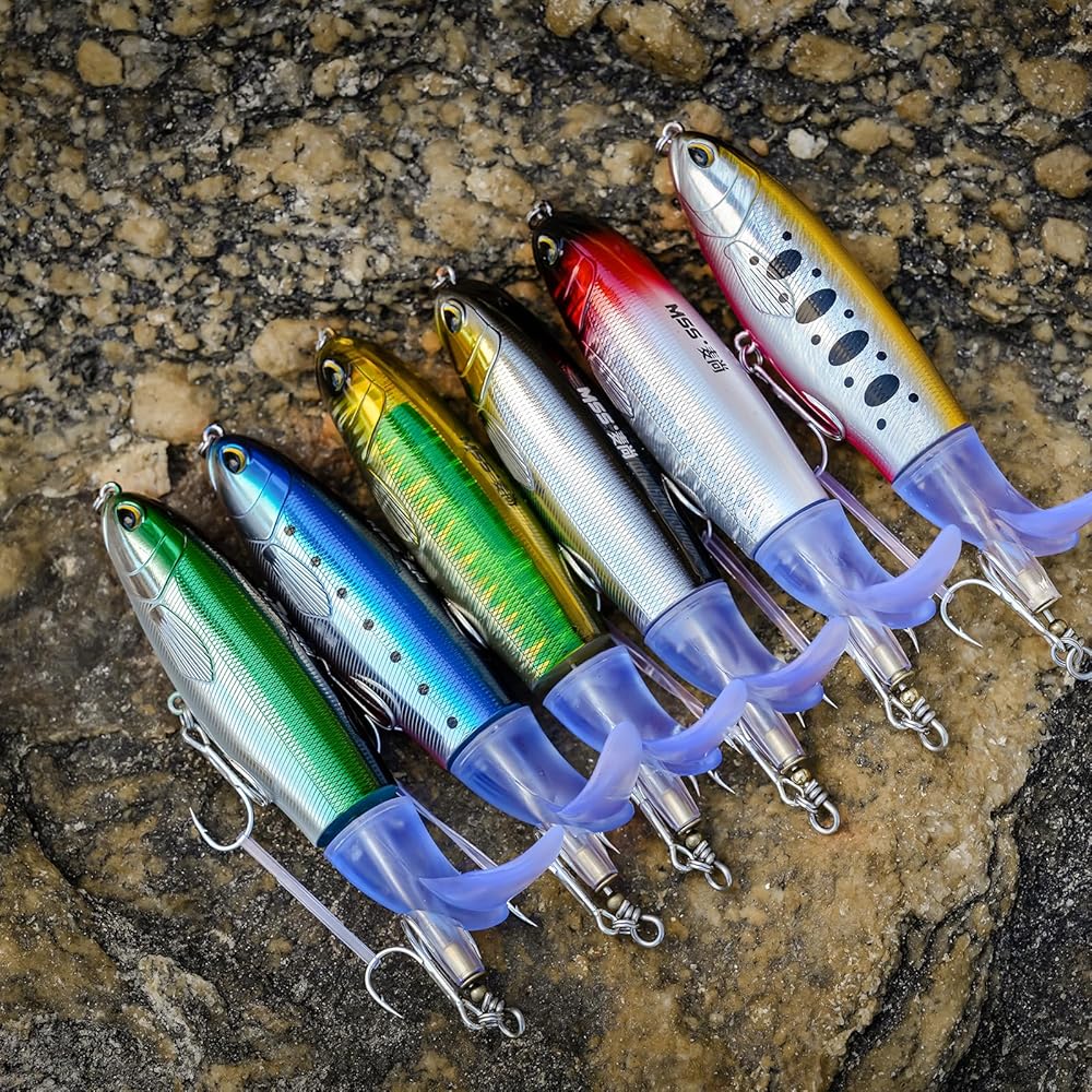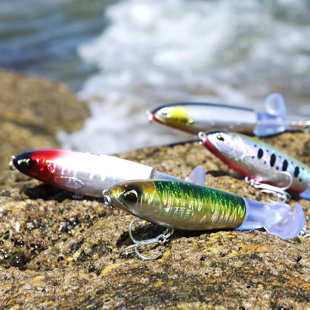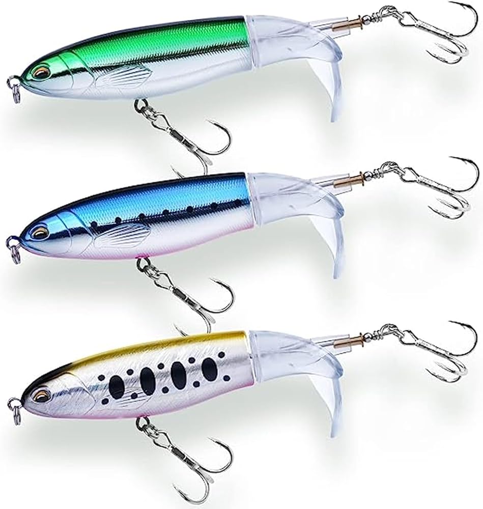 تسليم 3 قطع من طُعم الصيد في المياه العلوية للباس، طقم طُعم الصيد، طُعم عائم مع ذيل دوار عائم لسمك السلمون المرقط، طُعم المياه العلوية للمياه المالحة العذبة