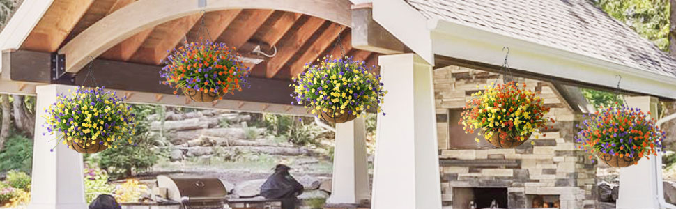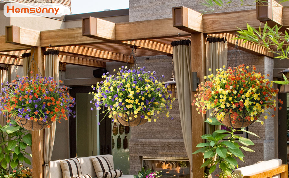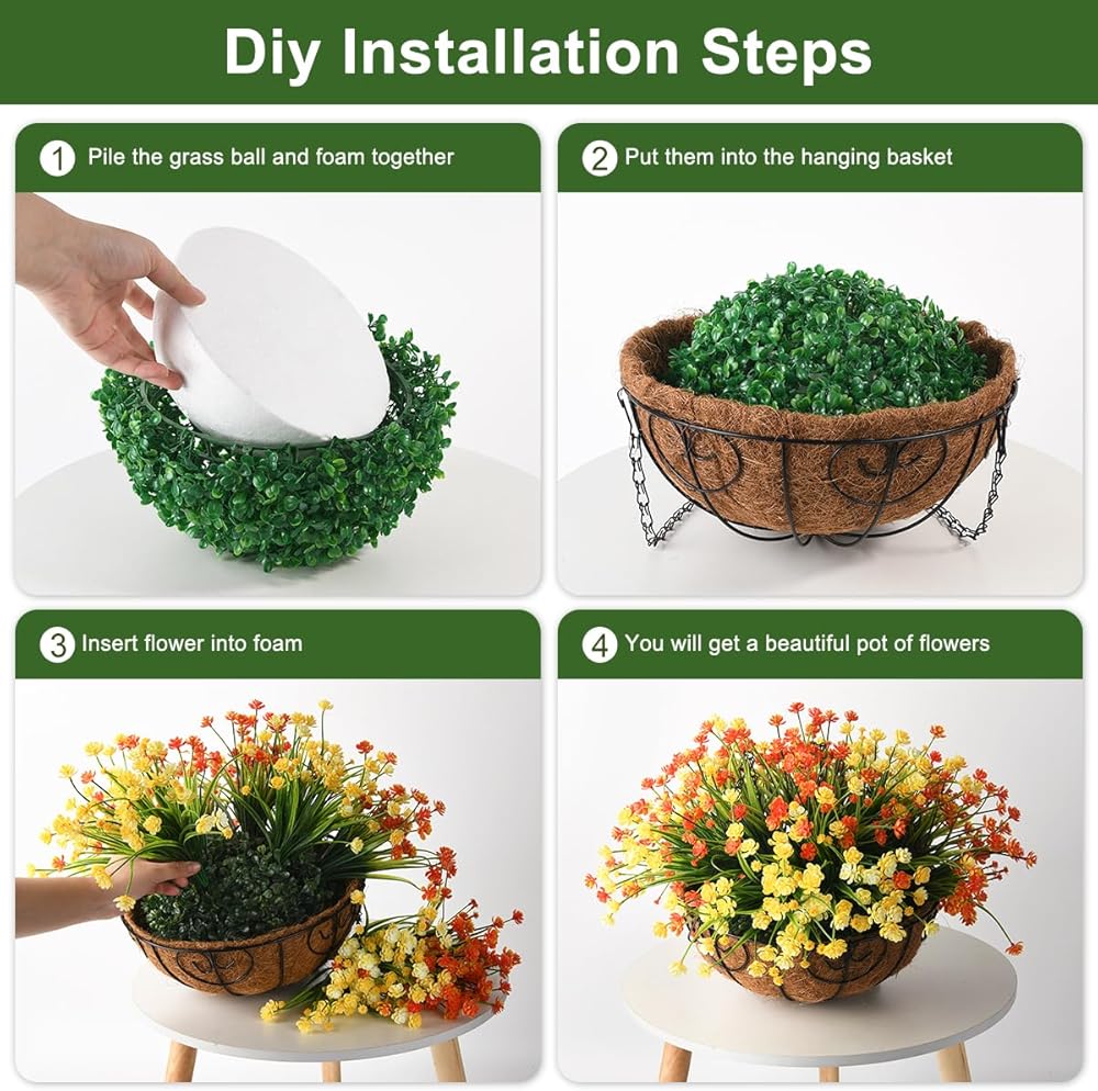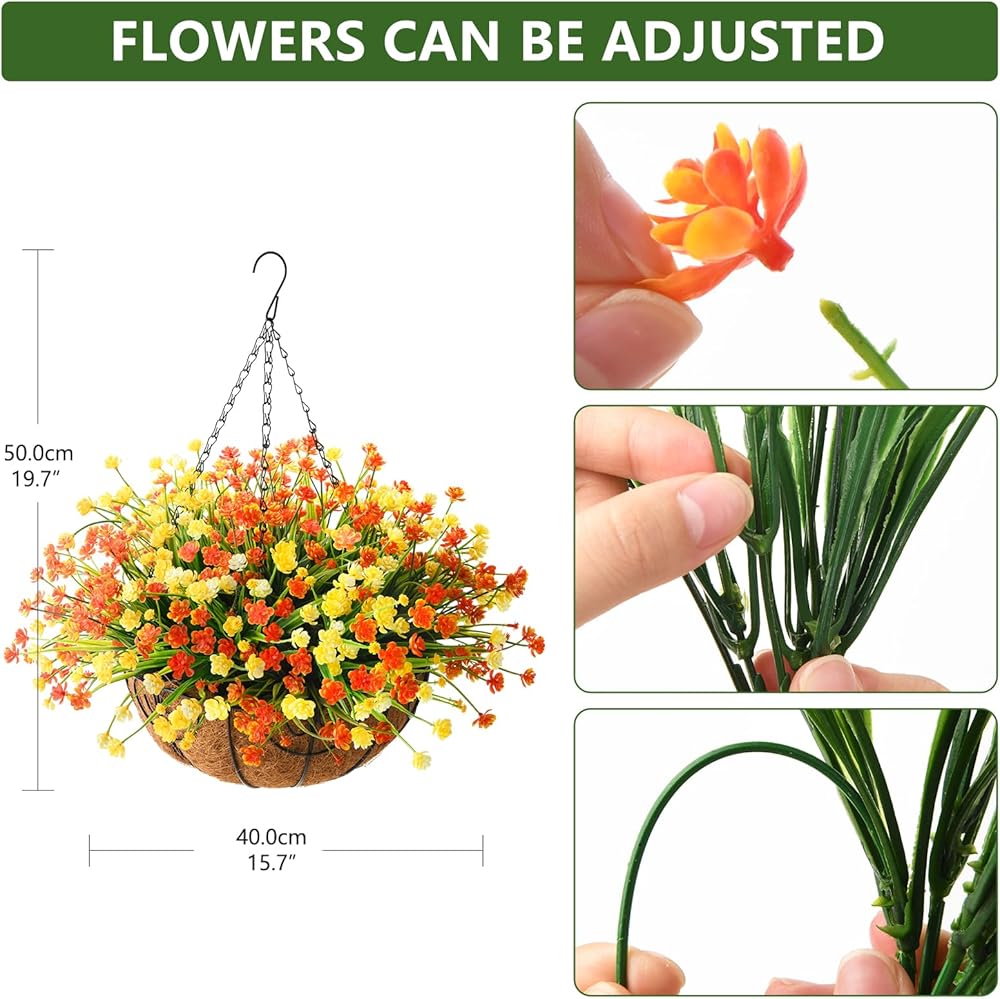 • سهلة التجميع: سلة الزهور الصناعية سهلة التجميع، ويمكن تعديل باقة الزهور إلى الحالة الطبيعية التي تريدها، ويمكنك الحصول على سلة الزهور مثل الصورة في وقت قصير، مما يضيف القليل من الطراز الشخصي لحديقتك أو الفناء أو المساحة الداخلية.