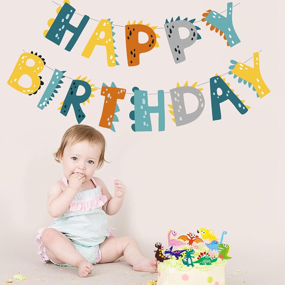 Dinosaur Birthday Party Decorations Supplies, Happy Birthday Banners Cake Topper Dinosaur Theme for Jungle Dinosaur Birthday Baby Shower Party for Kids /Cupcake Toppers/ Cake Decoration
