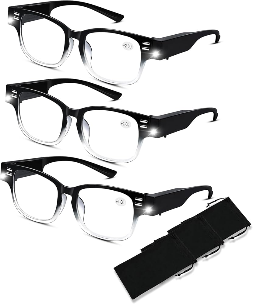 [نظارات القراءة مع الضوء] تأتي نظارات القراءة مع أضواء LED ساطعة على كل جانب. يمكن أن تساعدك على رؤية شيء أفضل، مما يمنحك رؤية واضحة ومشرقة في الظلام. مثالي للاستخدام في السيارة، أو في السرير، أو على متن الطائرة، أو في رحلة تخييم، أو في مكان مظلم جدًا بحيث لا يمكنك القراءة دون إزعاج الآخرين من حولك. نظارات القراءة الخفيفة سهلة الحمل أو التخزين. نظارات القراءة المضيئة العصرية تساعدك على الحصول على رؤية واضحة مع أو بدون الأضواء.