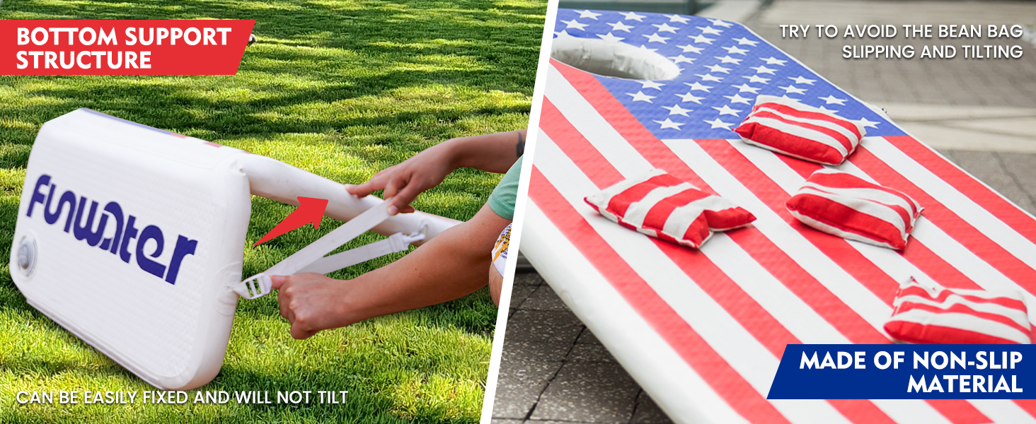 Ready to use out of the gift box, just inflate and go! The inflatable cornhole board has a speed safety valve for fast and easy to inflate and deflate. Folds easily for storage and carry.