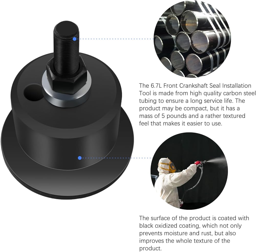 𝗛𝗶𝗴𝗵-𝗾𝘂𝗮𝗹𝗶𝘁𝘆 𝗠𝗮𝘁𝗲𝗿𝗶𝗮𝗹: أداة تثبيت ختم العمود المرفقي الأمامي مصنوعة من الفولاذ الكربوني عالي الجودة، مع طلاء أسود من الخارج. الوزن المناسب والطلاء الأسود يجعل نسيج المنتج أفضل. تضمن المواد عالية الجودة عمر خدمة طويل للمنتج، والطلاء الأسود يجعل منتجاتنا أكثر مقاومة للتآكل.