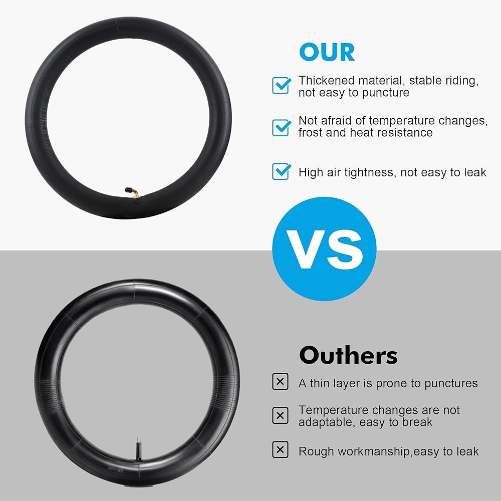 Perfect fit for 16" electric scooter wheels: Designed specifically to be compatible with 16" electric scooter wheels and E-Bike Tire Tube, our 2-pack inner tubes guarantee a seamless fit. easily replace your inner tubes with our convenient, easy-to-install design.