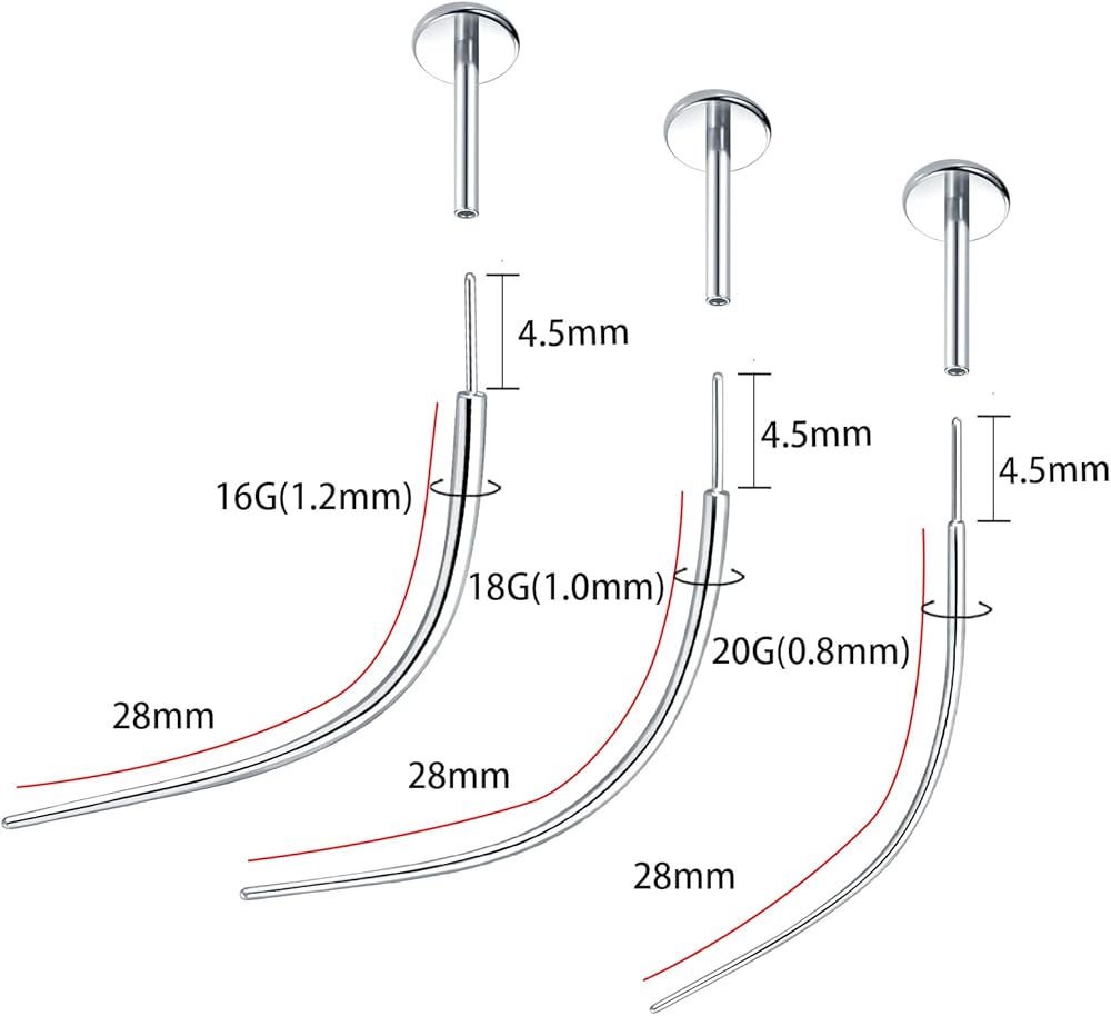 Oveta منحني ثقب تفتق 20G 18G 16G دفع في تفتق G23 التيتانيوم إدراج دبوس لأداة المجوهرات بدون خيوط
