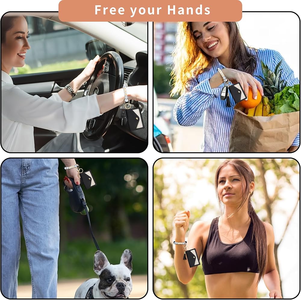 【Free Your Hands】When your hands are stuffed with shopping bags, holding kids, playing on the beach, holding all kinds of things that can't be freed, Searching in pocket for keys is it very upset? Me too!With our wristlet keychain wallet are saving moms headaches!The Keychain bracelet with a wallet keeps all your keys, ID, and cards in one place and makes you find the keys easily!