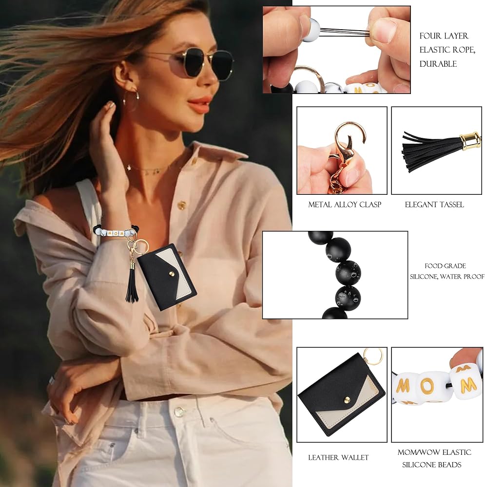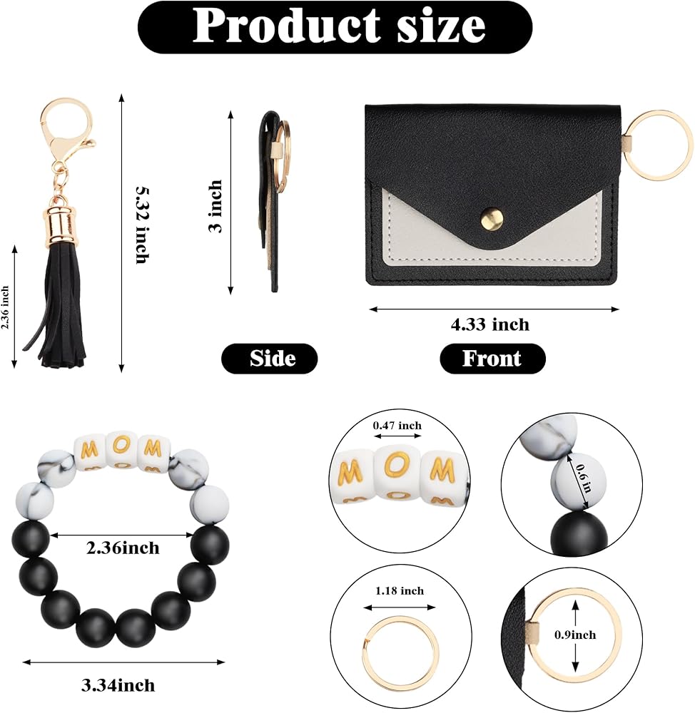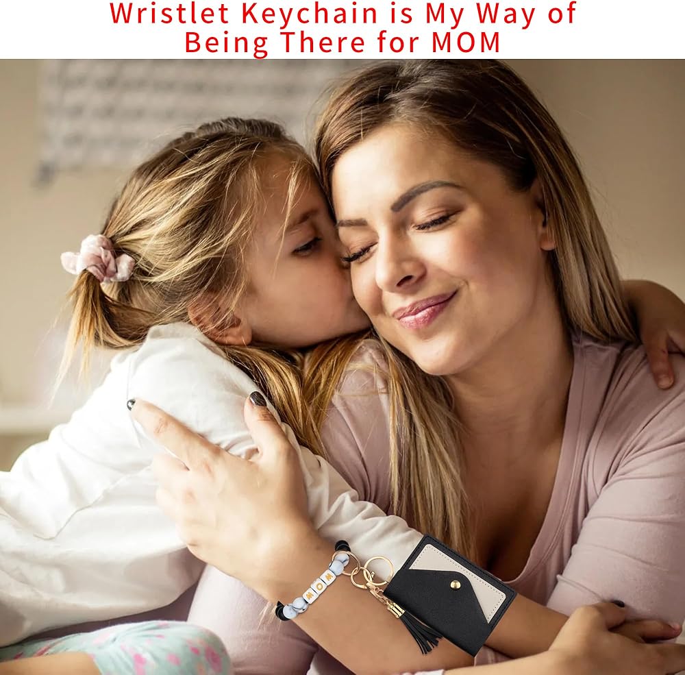 【Practical Gifts for Mom】This wristlet keychain with MOM silicone beads,printed warm and personalized text, is truly a great gift ideas for mother's birthday, Mothers Day, Christmas, Thanksgiving, or as thank you mom gifts,thinking of you mom gifts, sorry mom gifts, get well soon gifts. If you don't know what to buy as a gift for your mums, you can give us a chance to give it a try. Mums will absolutely love this practical wristlet keychain wallet.