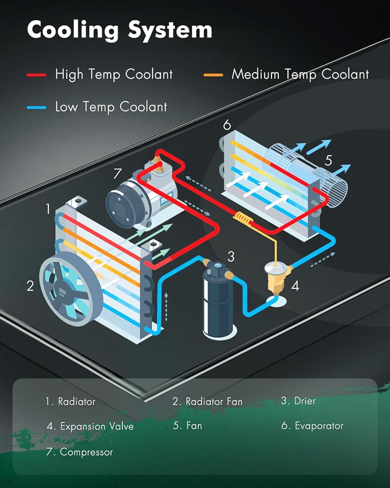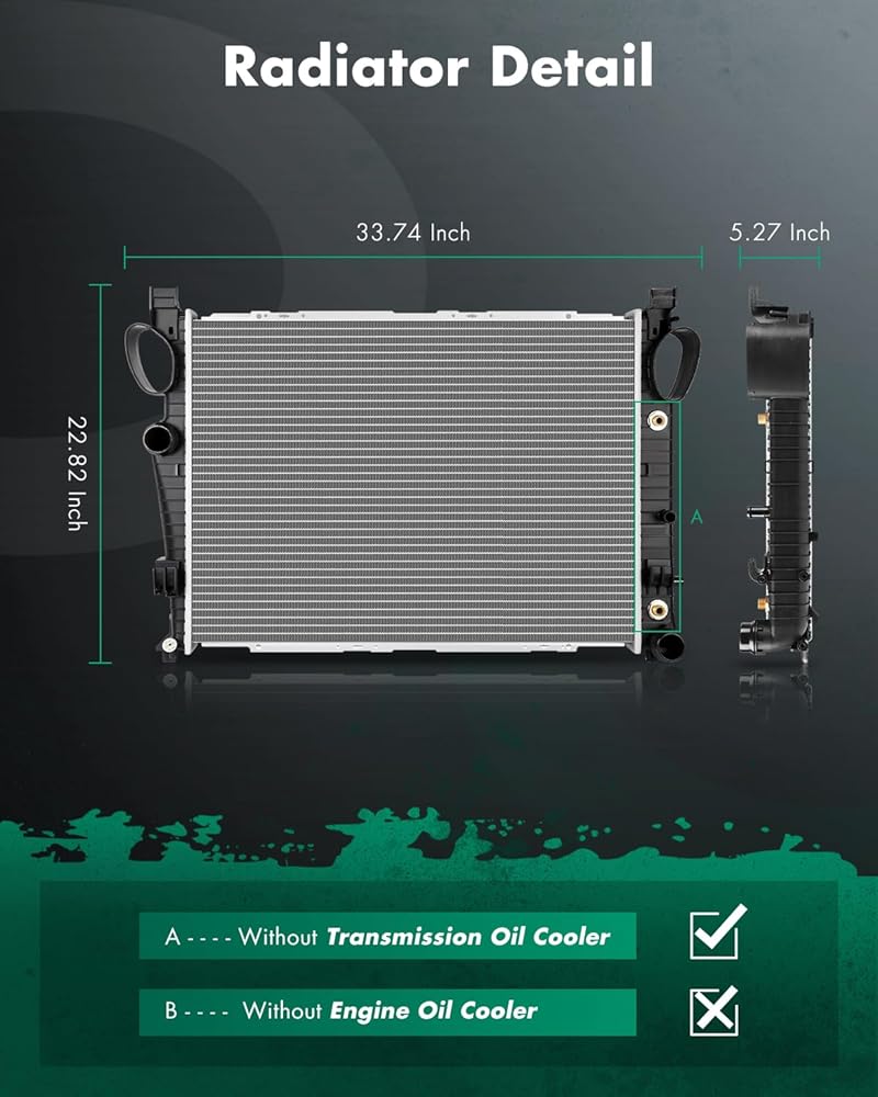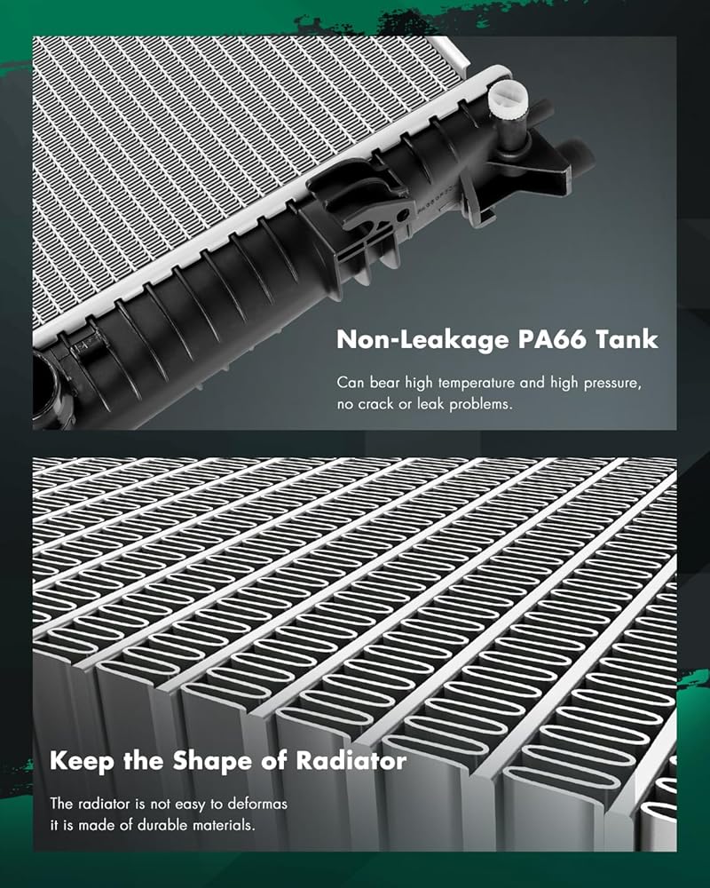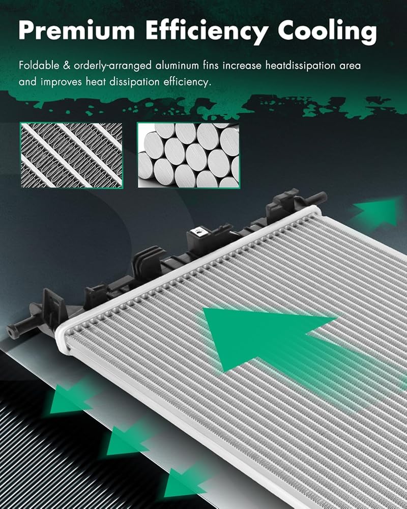 🚗المميزات - مصممة بزعانف عالية الكثافة ومتعددة الانخفاض لتحقيق أقصى قدر من كفاءة التبريد؛ تصميم OE لضمان الملاءمة الدقيقة والشكل والوظيفة لسهولة التركيب؛ الحشية والحلقات مصدومة حراريًا لضمان المتانة في الطقس البارد الشديد.