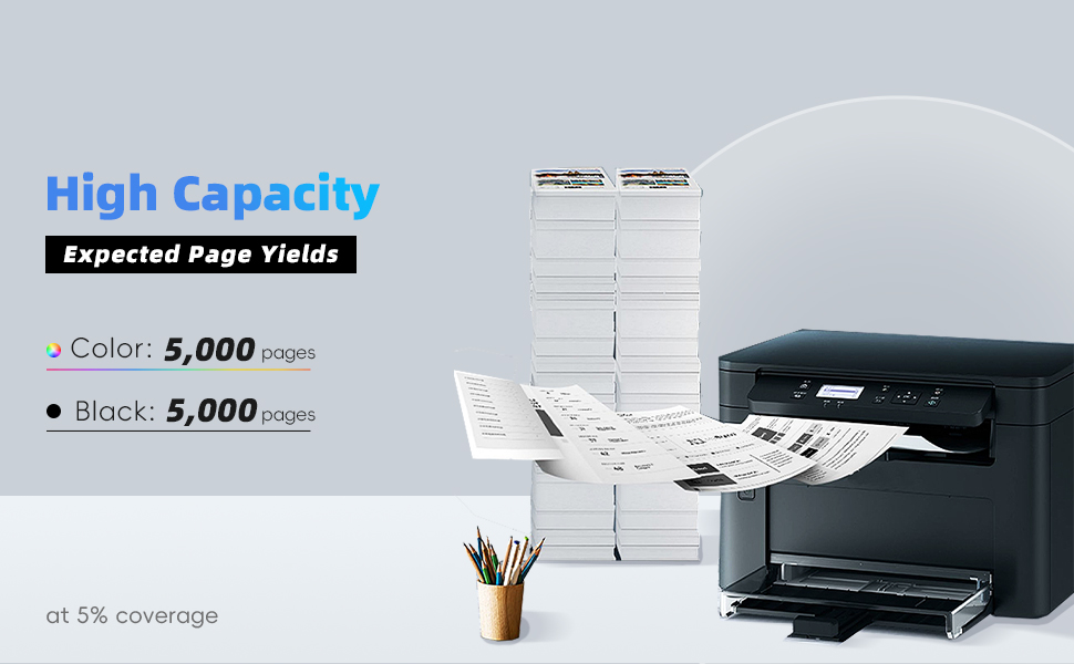 • إنتاجية الصفحة: 10,000 صفحة بتغطية 5% على letter/A4. (يمكن للرقاقة التي تمت ترقيتها عرض كمية الحبر المتبقية.)
