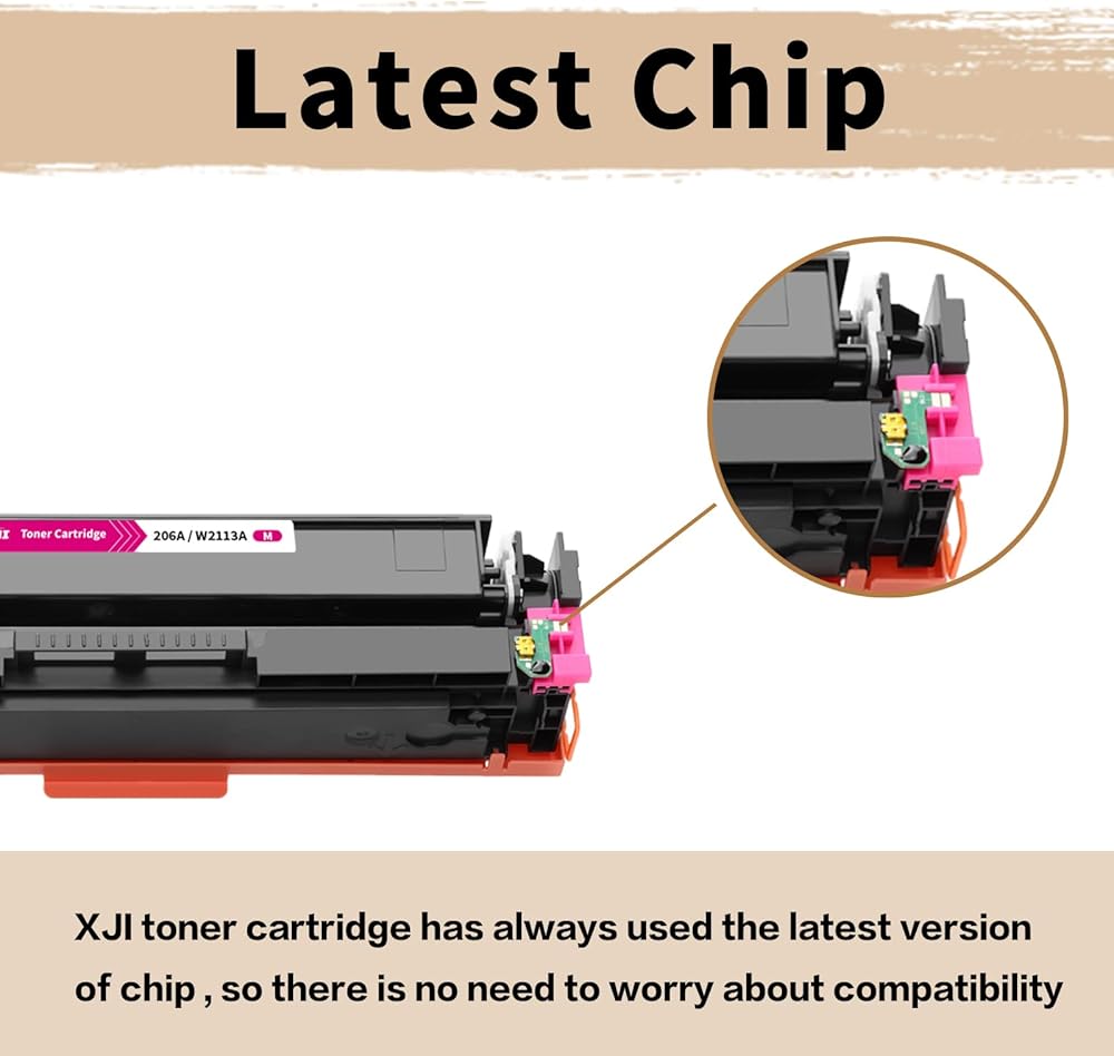 - مع الرقاقة: خرطوشة الحبر الأرجوانية 206A المتوافقة مع XJI مثبتة بالفعل بأحدث الرقائق، لا حاجة لنقل أو تثبيت الرقائق الأصلية