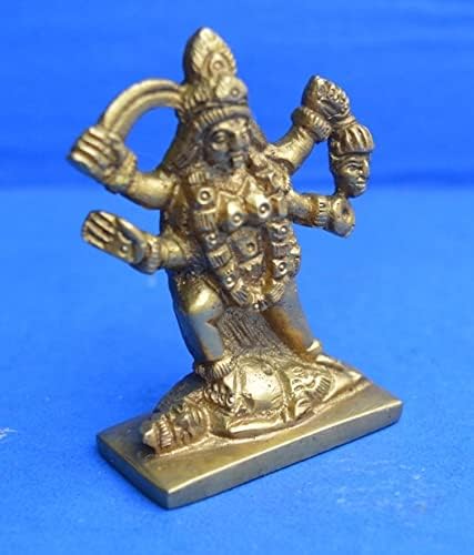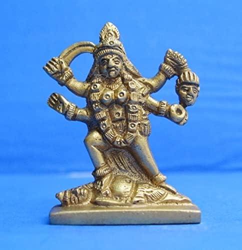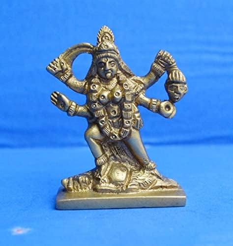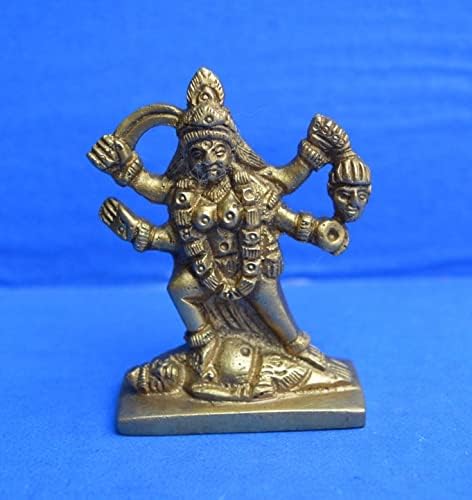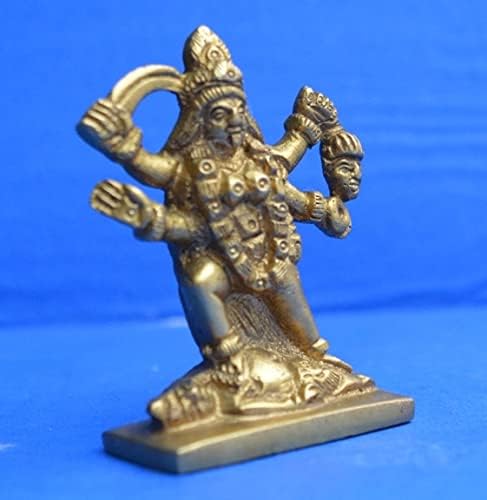 Powerful Spiritual Goddess Maa Maha Kali On Shiva Brass Statue Hindu Idol Brass Goddess Mahakali for Home Temple Mandir Kalkaji Idol Spiritual Puja Vastu India Goddess Kali BRASS (2.5"inch) 150gram