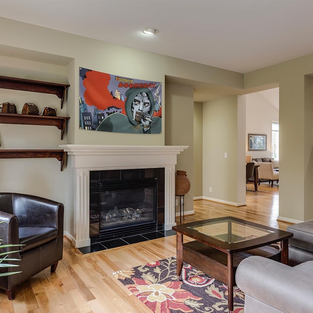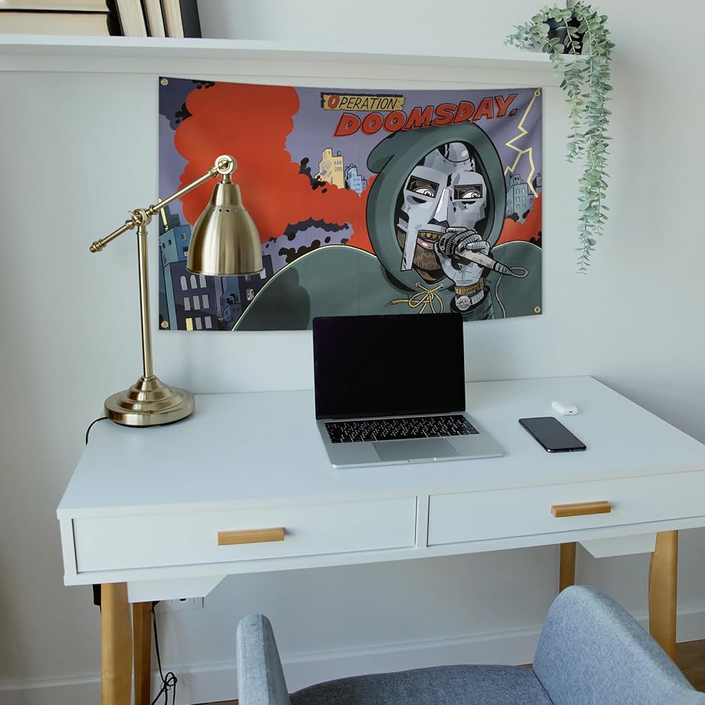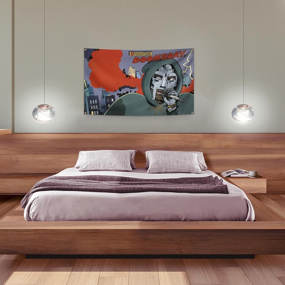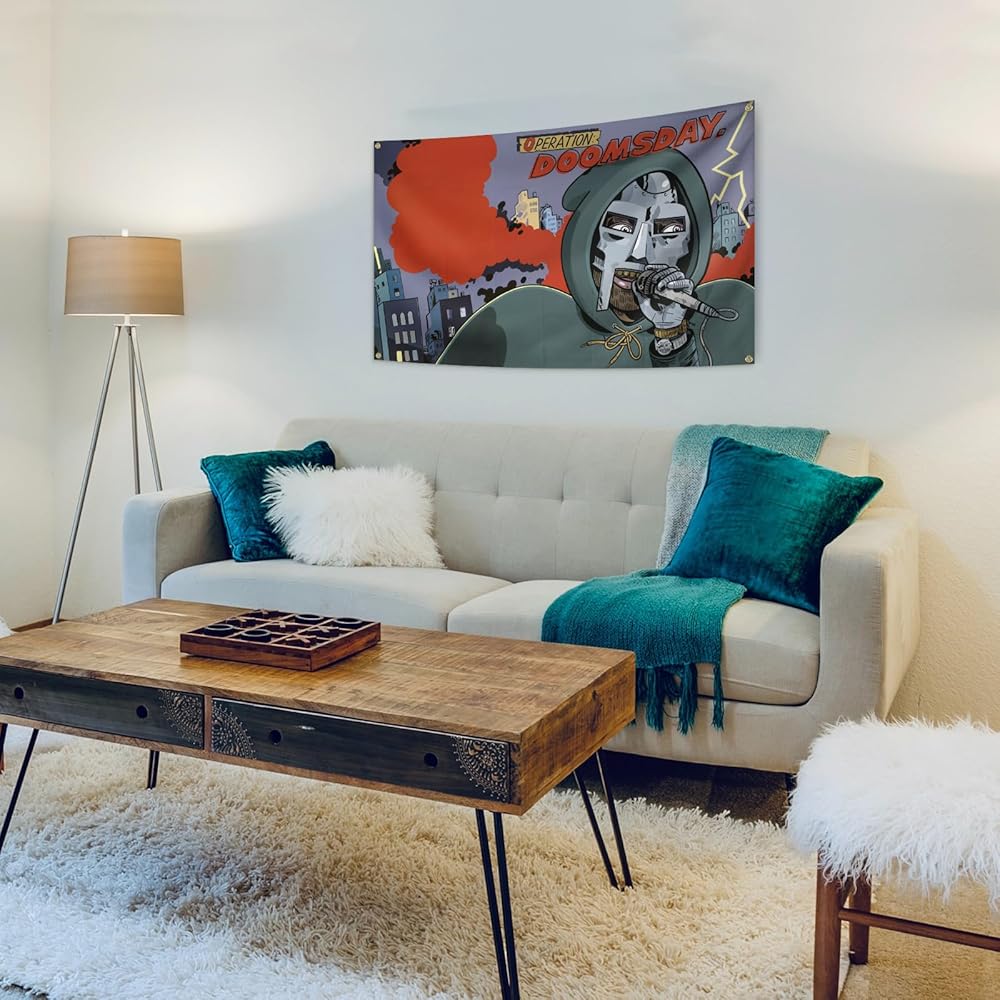 AuLYn مضحك MF مغني الراب الموت نسيج ألبوم الموسيقى غطاء نسيج 3x5Ft نسيج غرفة الفن ديكور نسيج الزينة الجدار شنقا الهدايا للمراهقين غرفة نوم غرفة المعيشة، الأخضر