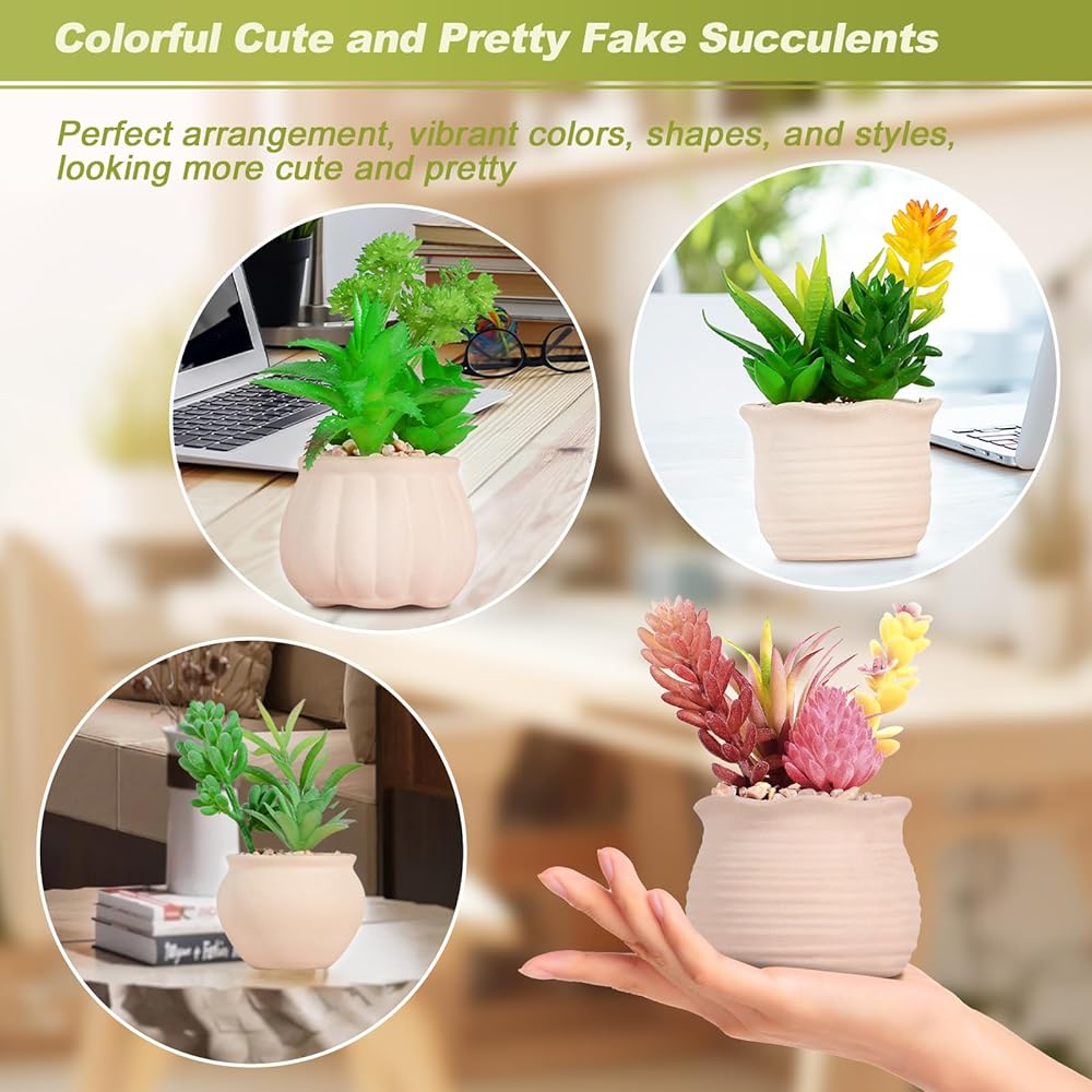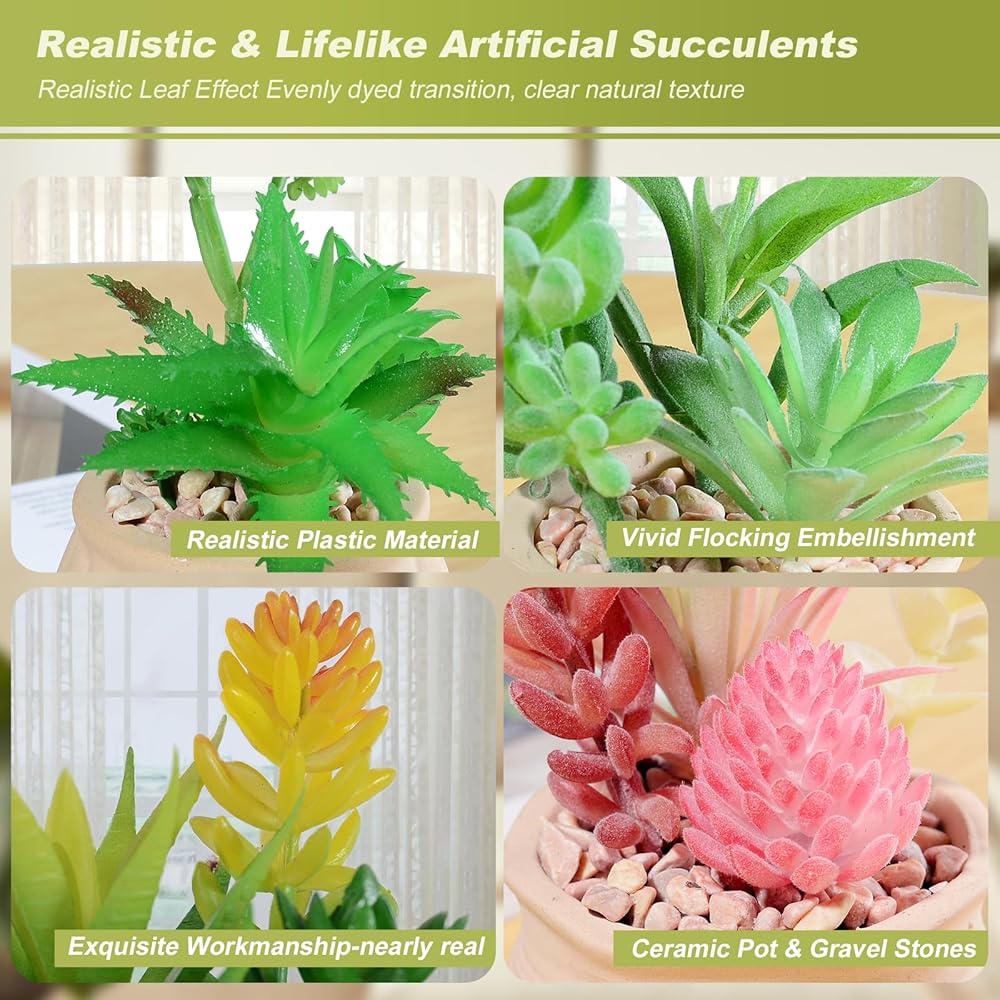 • [🎍نظام بيئي طبيعي للنباتات العصارية الاصطناعية النابضة بالحياة]--هذه النباتات المكتبية في الأواني مصنوعة من البلاستيك الآمن الذي لا طعم له، وبعضها مزخرف بالتدفق لمزيد من الواقع (وليس الغبار). يتم لصق النباتات العصارية الصغيرة بقوة في أواني السيراميك مع أحجار الحصى على السطح، بحيث يبدو المظهر العام أكثر واقعية وحيوية وأقرب إلى الطبيعة. ضعها في المكتب أو المكتب أو رف الكتب، وأضف لمسة من اللون والحيوية إلى مساحة العمل، حتى يسترخي جسمك وعقلك.