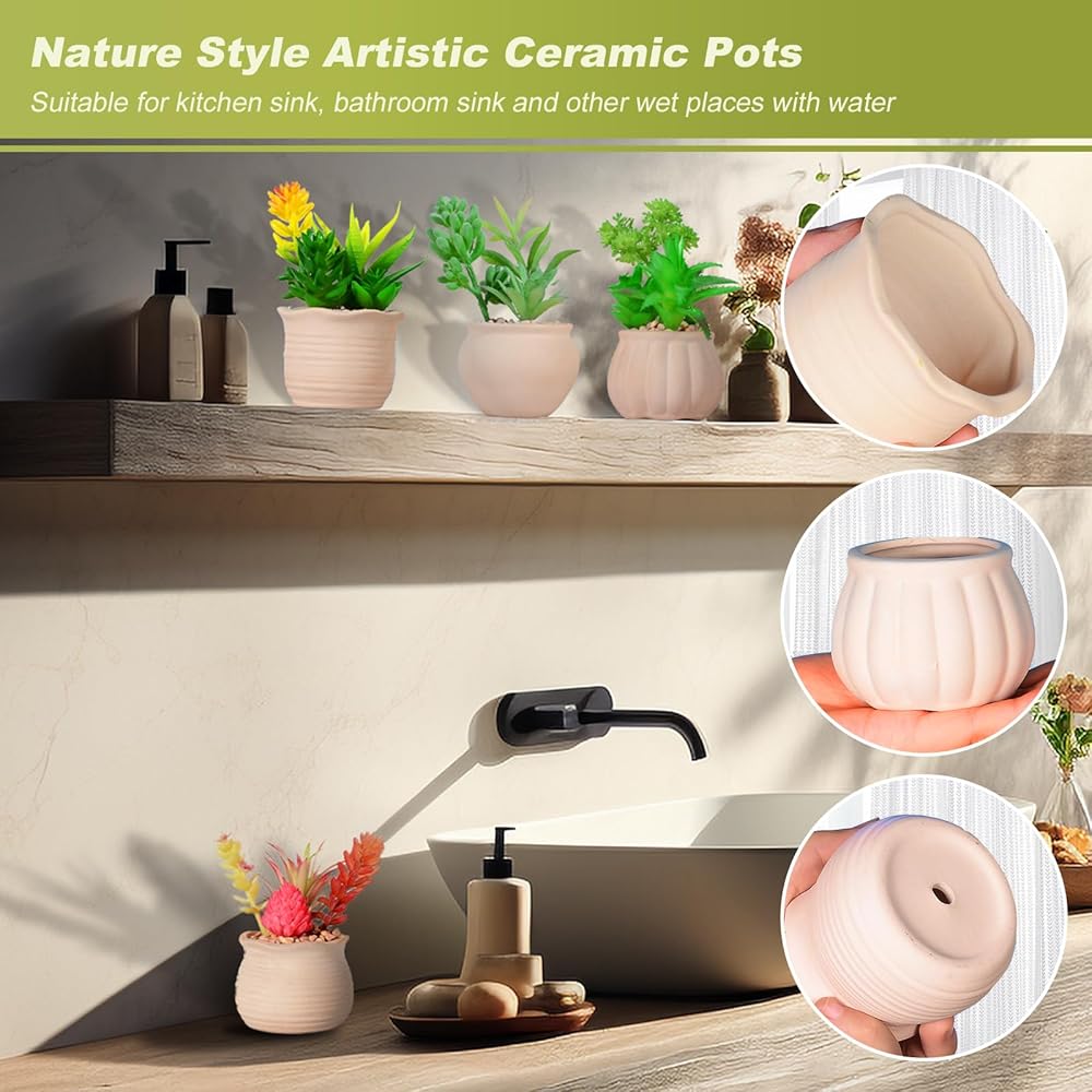 • [🎍أواني فنية لطيفة للنباتات العصارية الصغيرة]--4 عبوات من النباتات المكتبية الجميلة تتطابق مع 4 ألوان مختلفة من مزارعي السيراميك. بالمقارنة مع مادة لب الورق، فإن الأواني الخزفية أكثر متانة وفنية، وتكمل مجموعة واسعة من الديكورات الملونة. بالإضافة إلى ذلك، لا داعي للقلق بشأن تحلل المزارعون في الماء، فهو مناسب بشكل خاص لوضعه في حوض المطبخ وحوض الحمام وغيرها من الأماكن الرطبة بالماء.