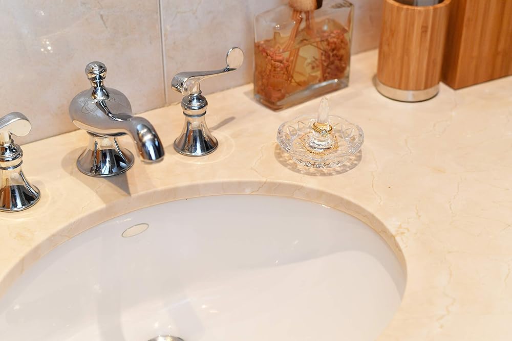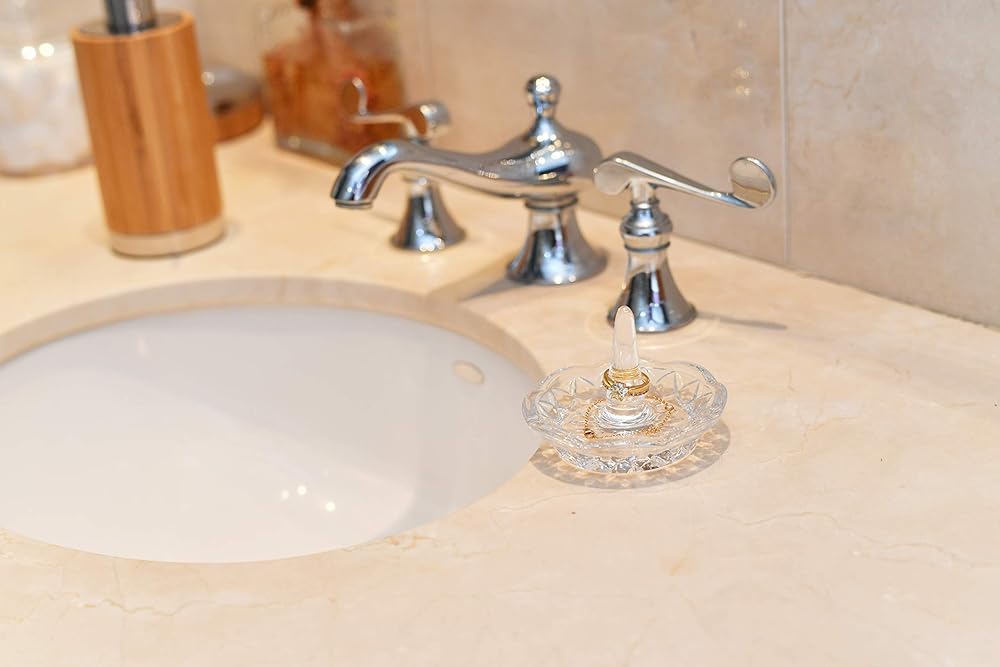 - حامل حلقي زجاجي منحوت من الزجاج الصلب والأنيق.