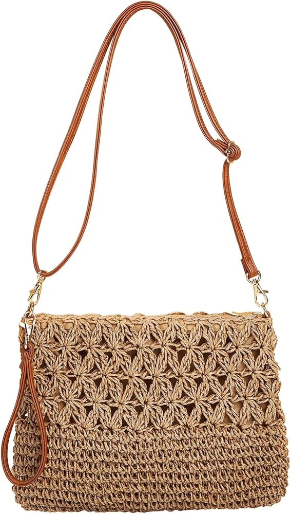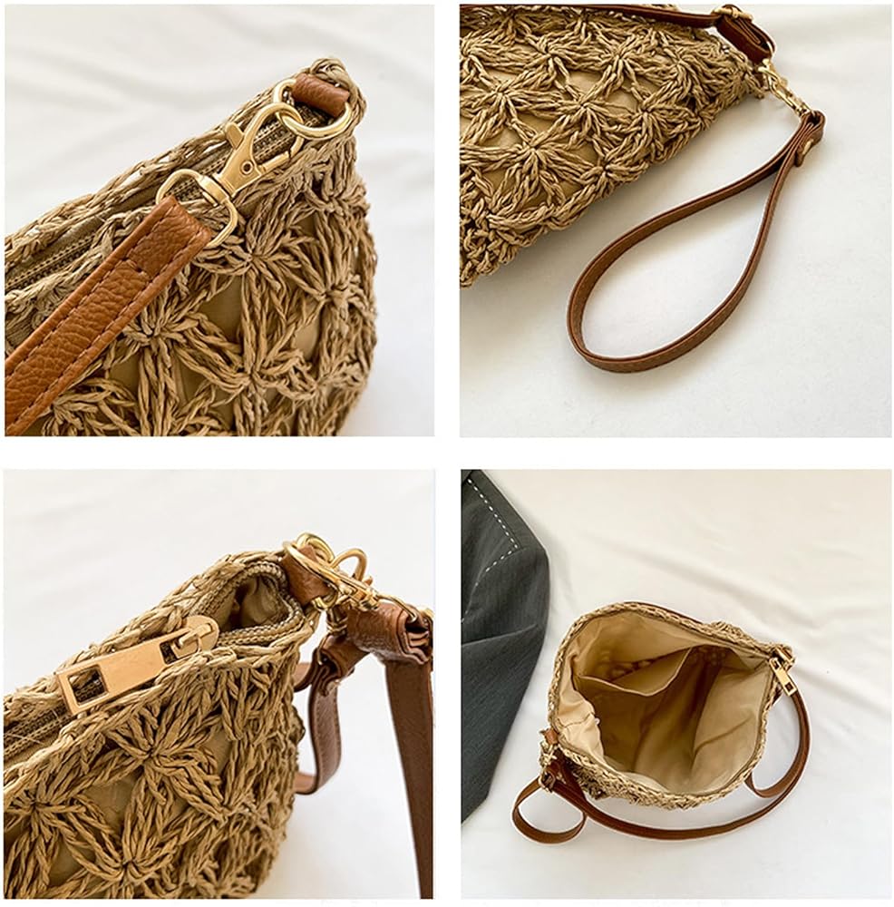 حقائب صيفية ذات قش: حقيبة منسوجة يدويًا من Comeon للسيدات ذات طراز كاجوال، تصميم متين، جميل وبسيط وساحر للترفيه. اللون البني والبيج للاختيار من بينها، مثالي لمطابقة النمط البوهيمي، وعطلة الشاطئ البحري، كما أنه خيار جيد للأنشطة الخارجية اليومية. تصميم كلاسيكي جميل وعصري وصناعة متقنة تجذب الكثير من العيون.
