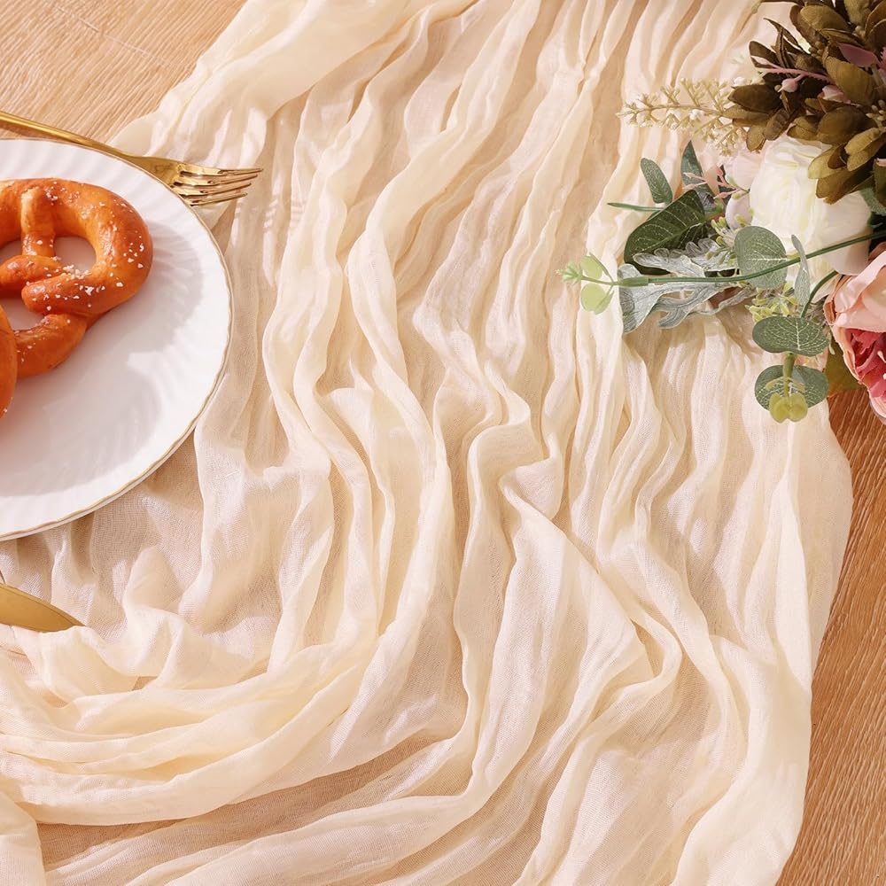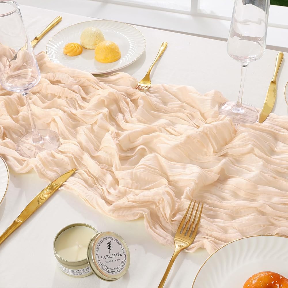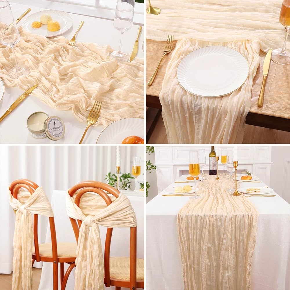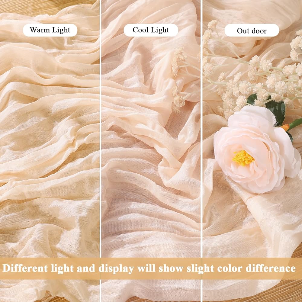 ناعمة وجميلة: مفارش المائدة المصنوعة من قماش الجبن مصنوعة من قطن الشاش الطبيعي وجيد التهوية. ناعمة الملمس وسهلة التشكيل. لون رائع ونسيج جيد التهوية يجعل مفرش الطاولة ديكورًا حالمًا ورومانسيًا للمناسبات.