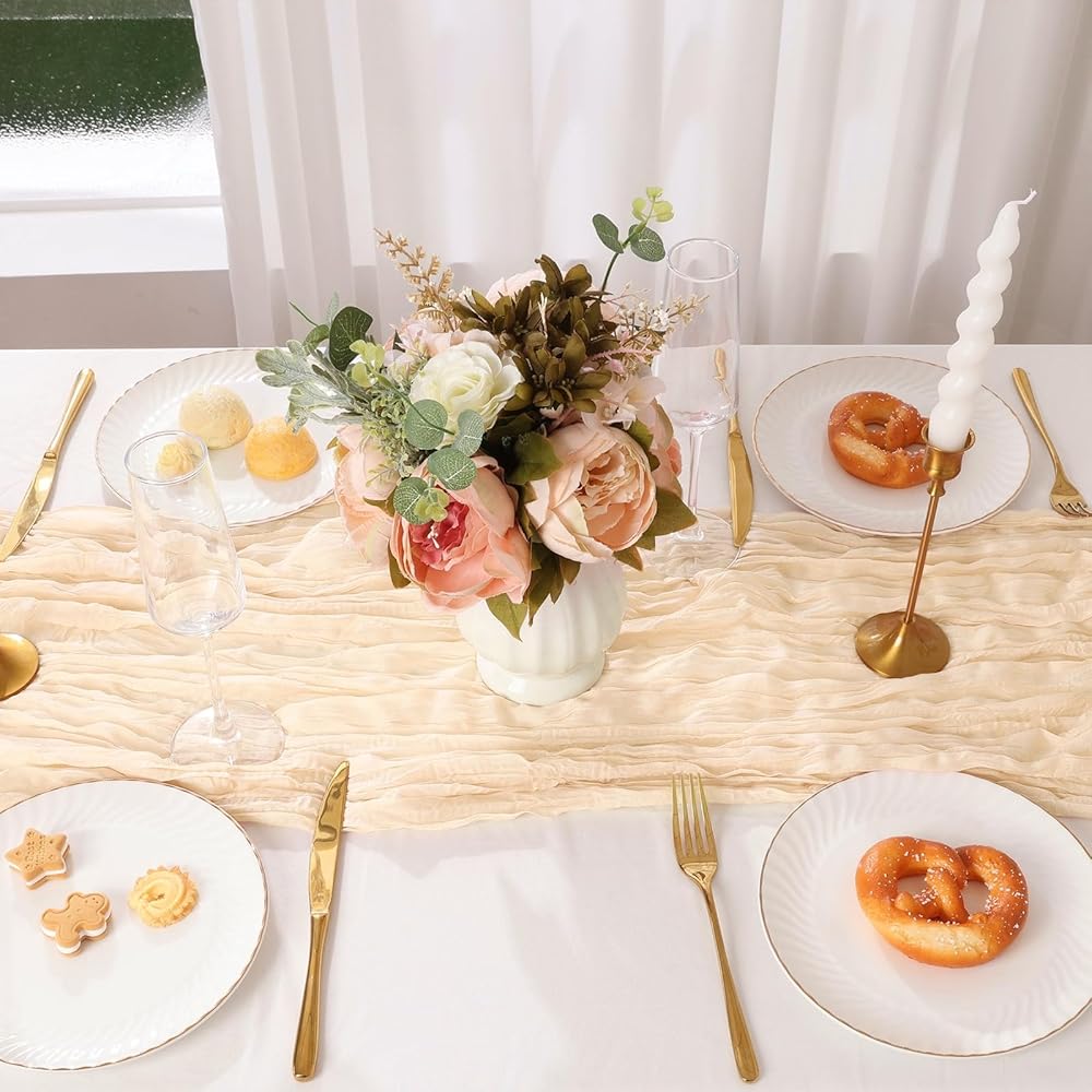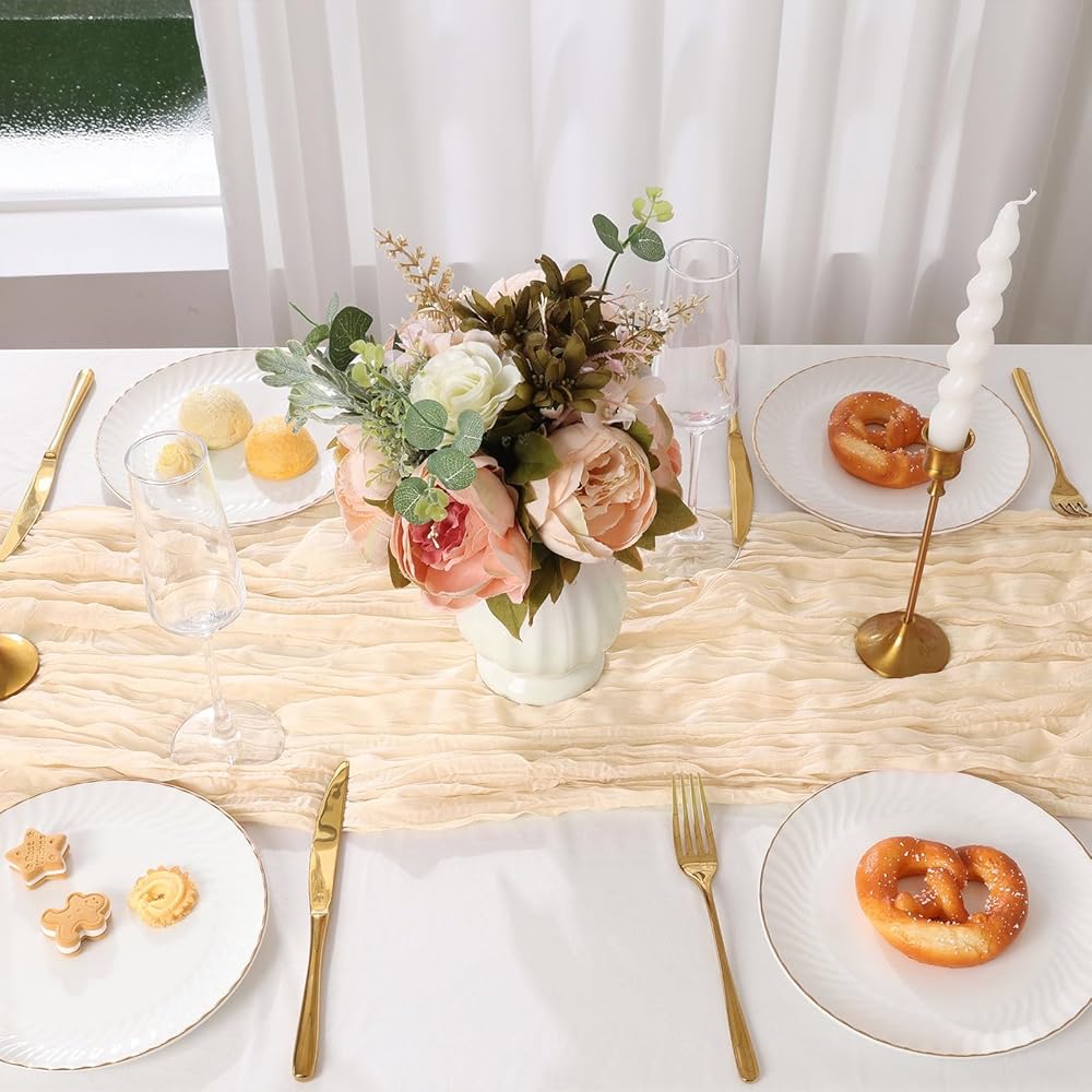 ديكور الطاولة: مفرش قماش جبن شاكوس يبدو لطيفًا في مناسبات مختلفة، مثالي لديكورات الزفاف، وحفلات استقبال المولود الجديد، وحفلات الزفاف، وحفلات الخطوبة، وحفلات أعياد الميلاد، وديكور الموقد، والنزهات، وتصميم التصوير الفوتوغرافي. زخرفة أنيقة لحفلات الزفاف، والنزهات الصيفية، وعيد الحب، وعيد الشكر، والكريسماس وغيرها من المناسبات الخاصة.