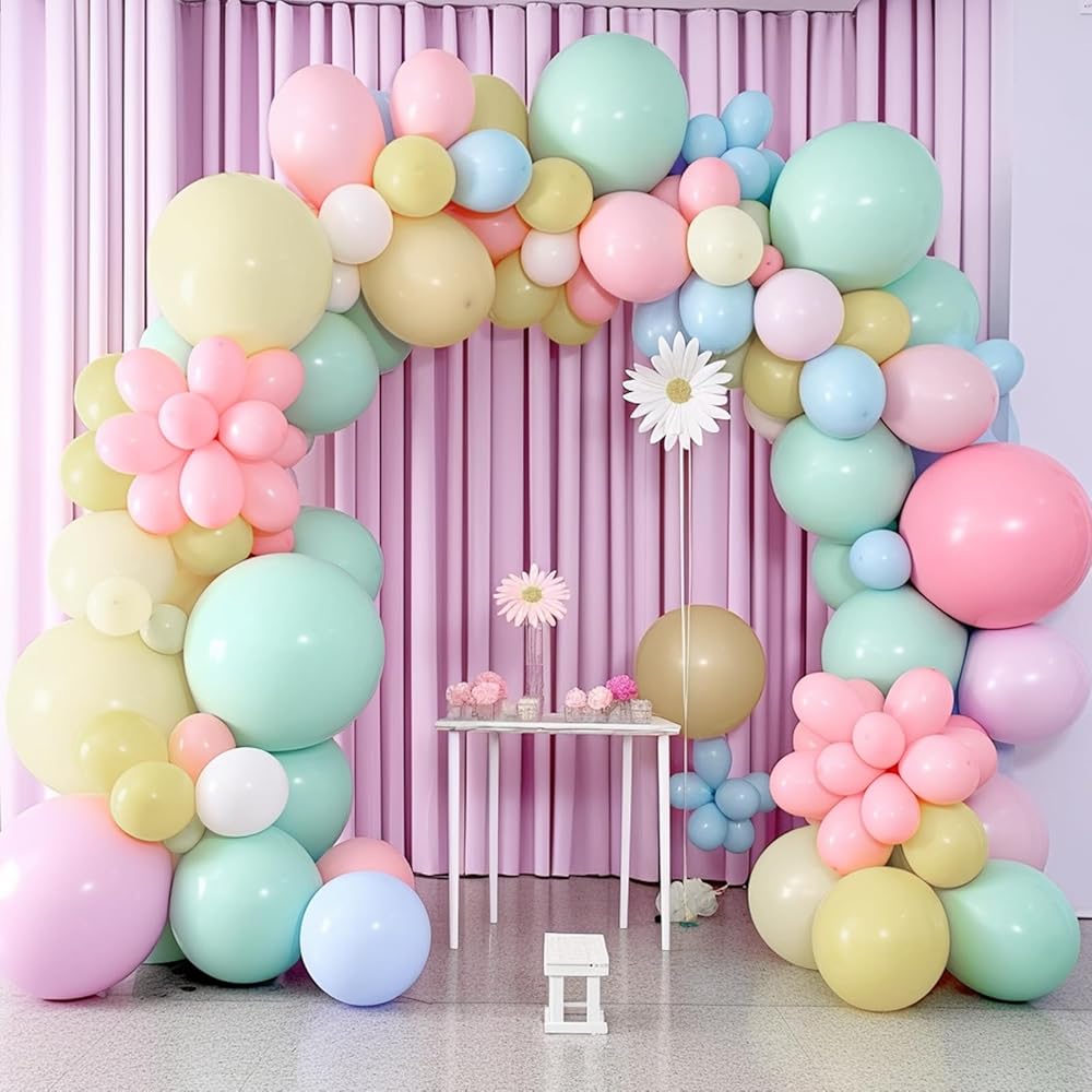 بالونات الباستيل: سوف تحصل على مجموعة قيمة رائعة من مجموعة بالونات الباستيل، بما في ذلك 60 بالونة مقاس 5 بوصات، و30 بالونة مقاس 12 بوصة، و30 قطعة بالونات مقاس 10 بوصة، و6 قطع بالونات مقاس 18 بوصة، ويأتي كل حجم في مجموعة متنوعة من ألوان الباستيل مثل الأصفر الناعم والوردي والأزرق والنعناعي والأرجواني والمزيد. ستمنحك بالونات اللاتكس الناعمة والنابضة بالحياة ذكرى مبهرة في حفلتك.