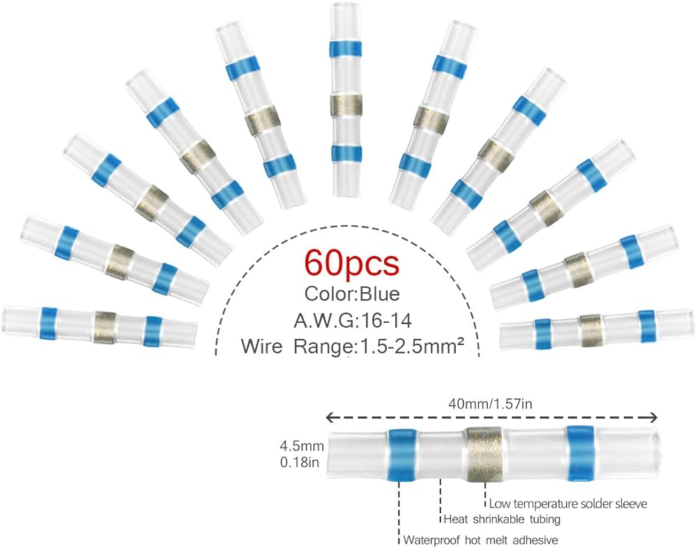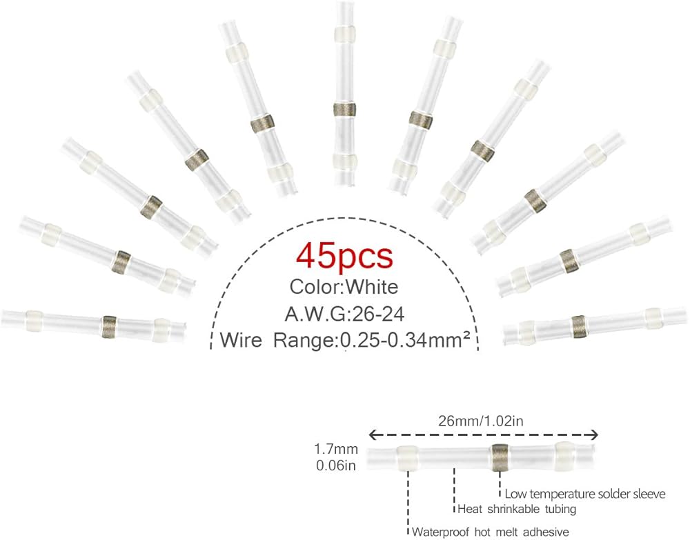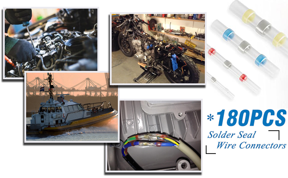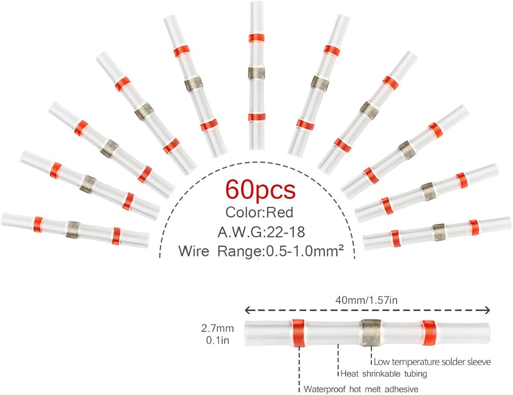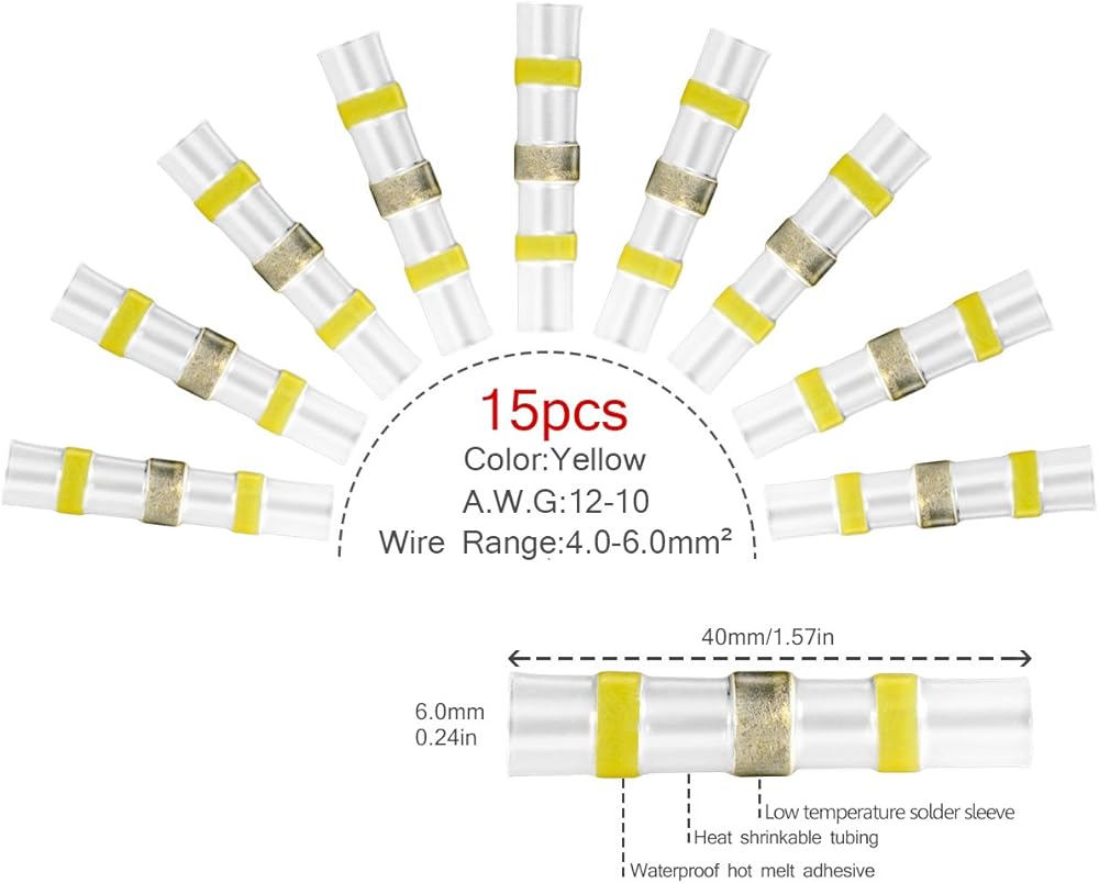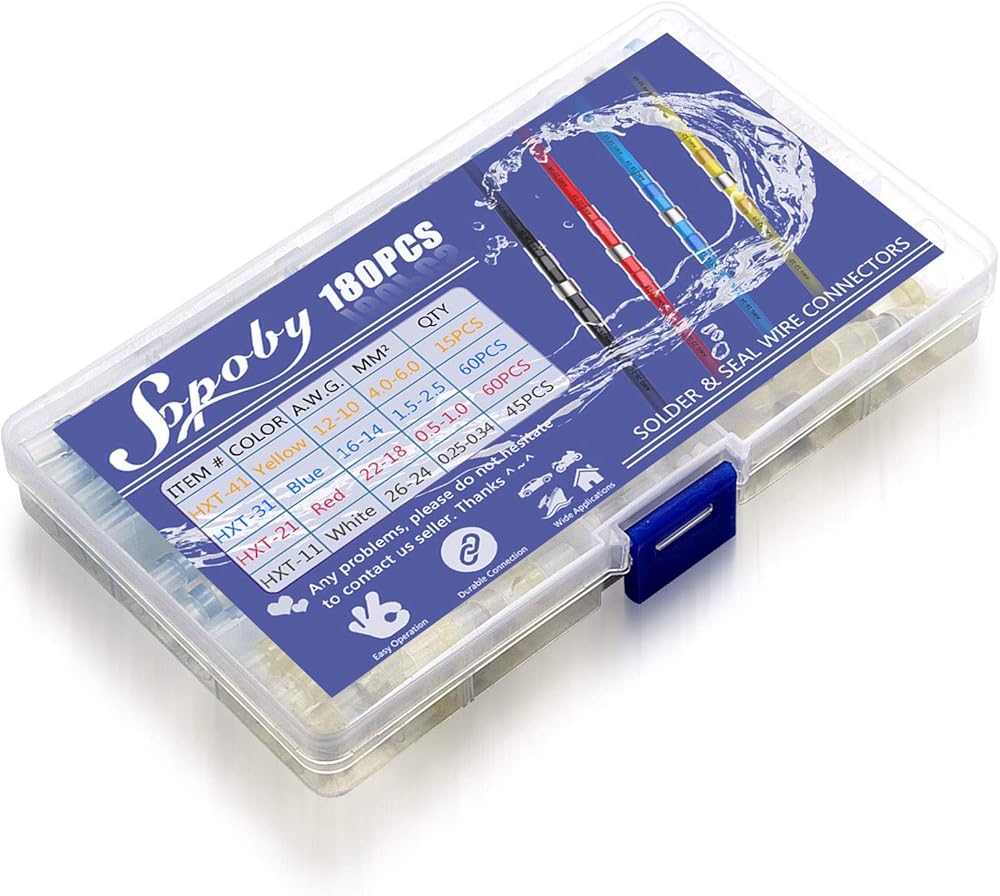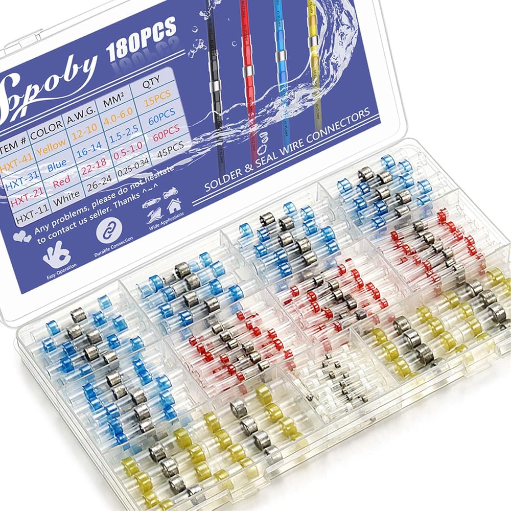 180 قطعة من موصلات أسلاك اللحام من Sopoby، موصلات بعقب قابلة للانكماش الحراري، محطات السيارات الكهربائية المقاومة للماء (60 أحمر، 60 أزرق، 45 أبيض، 15 أصفر)