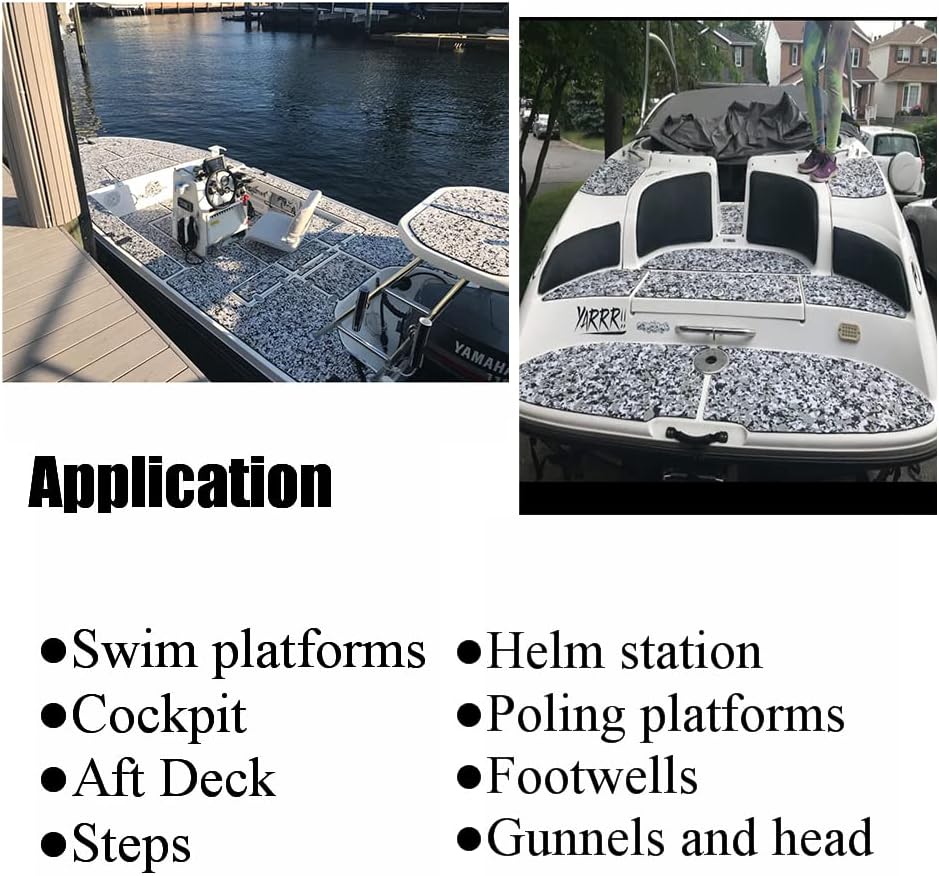 تطبيقات واسعة - أرضيات القوارب المصنوعة من إسفنج EVA المستخدمة في تزيين القوارب، وأرضيات المركبات الترفيهية، وتزيين قوارب الكاياك، وأرضيات اليخوت، والرصيف العائم، وحمام السباحة، وحصيرة المنصة، ومقطورة القارب، ووسادة جر لوح ركوب الأمواج، وحصيرة قبضة سطح السفينة، وأرضية السلالم، ولوح مجداف SUP، لوح التزلج، لوح التزلج، قارب بمحرك، سطح القارب، حصيرة بحرية، الحمام، المطبخ، أرضيات القوارب، عربة الجولف أو أي مكان آخر