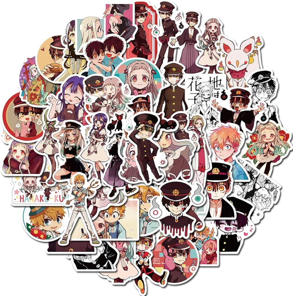 حزمة ملصقات Hanako-kun ملزمة للمرحاض مكونة من 50 ملصقًا - ملصقات متينة مقاومة للماء وملصقات الرسوم المتحركة اليابانية الكلاسيكية لزجاجات المياه وأجهزة الكمبيوتر المحمولة (المرحاض ملزمة Hanako-kun)