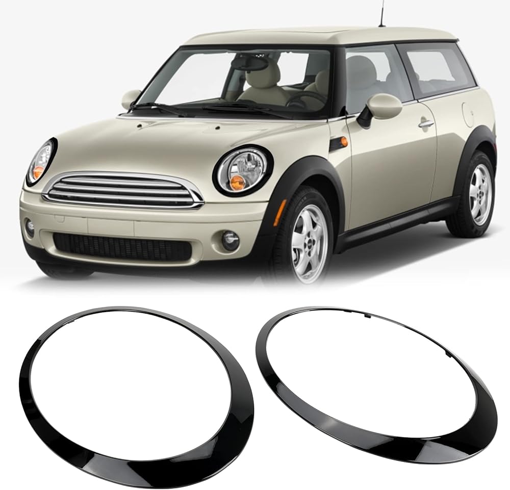 حلقة تزيين المصباح الأمامي للسائق والركاب الجانبي للمصباح الأمامي، إطار حلقي لمصابيح الرأس متوافق مع Mini Cooper R55 S R56 S R57 S R58 S R59 S OEM#51137149905، 51137149906 (أسود)