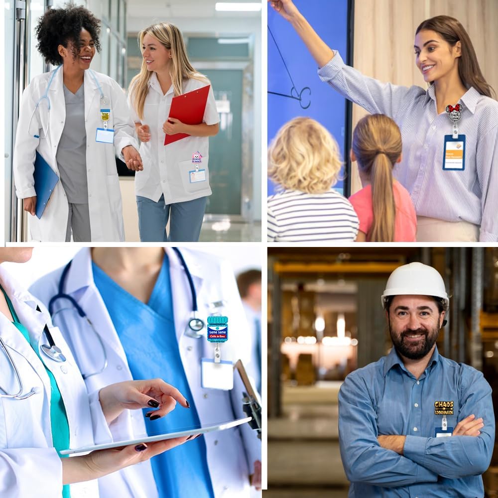 تصميم فريد: كل حامل شارة مضحك له تصميم فريد ولامع، فهو لطيف واحترافي؛ سوف تحب بكرة الشارة اللطيفة هذه، يمكنها حماية وثيقة الهوية الخاصة بك بقوة وتخفيف مزاجك أثناء العمل. سوف يضحك الآخرون عندما يرونها.