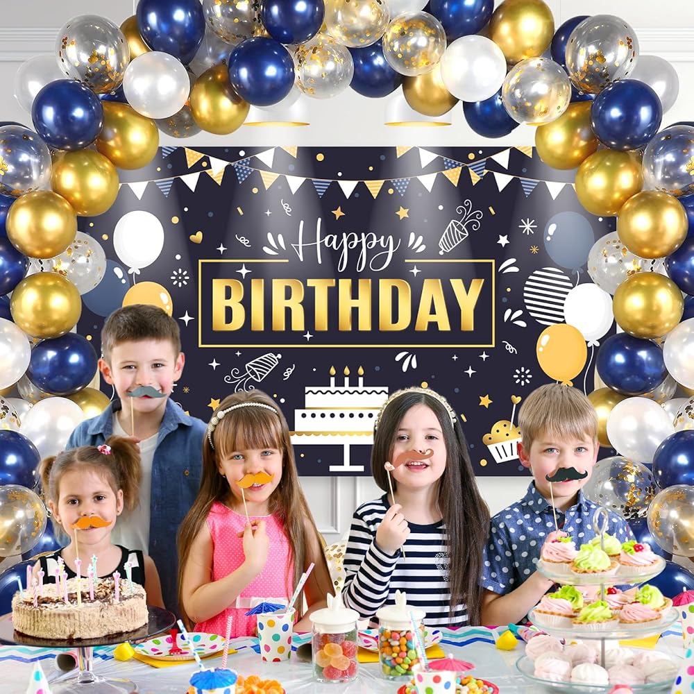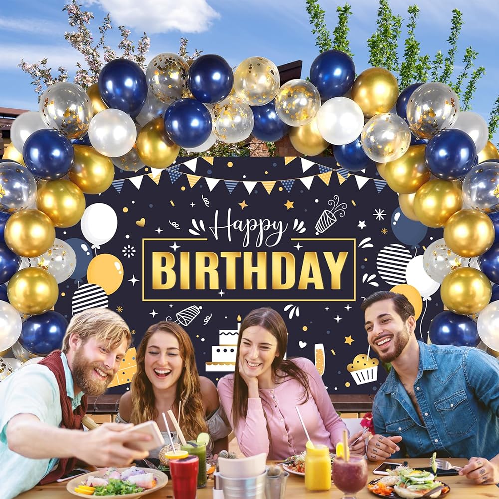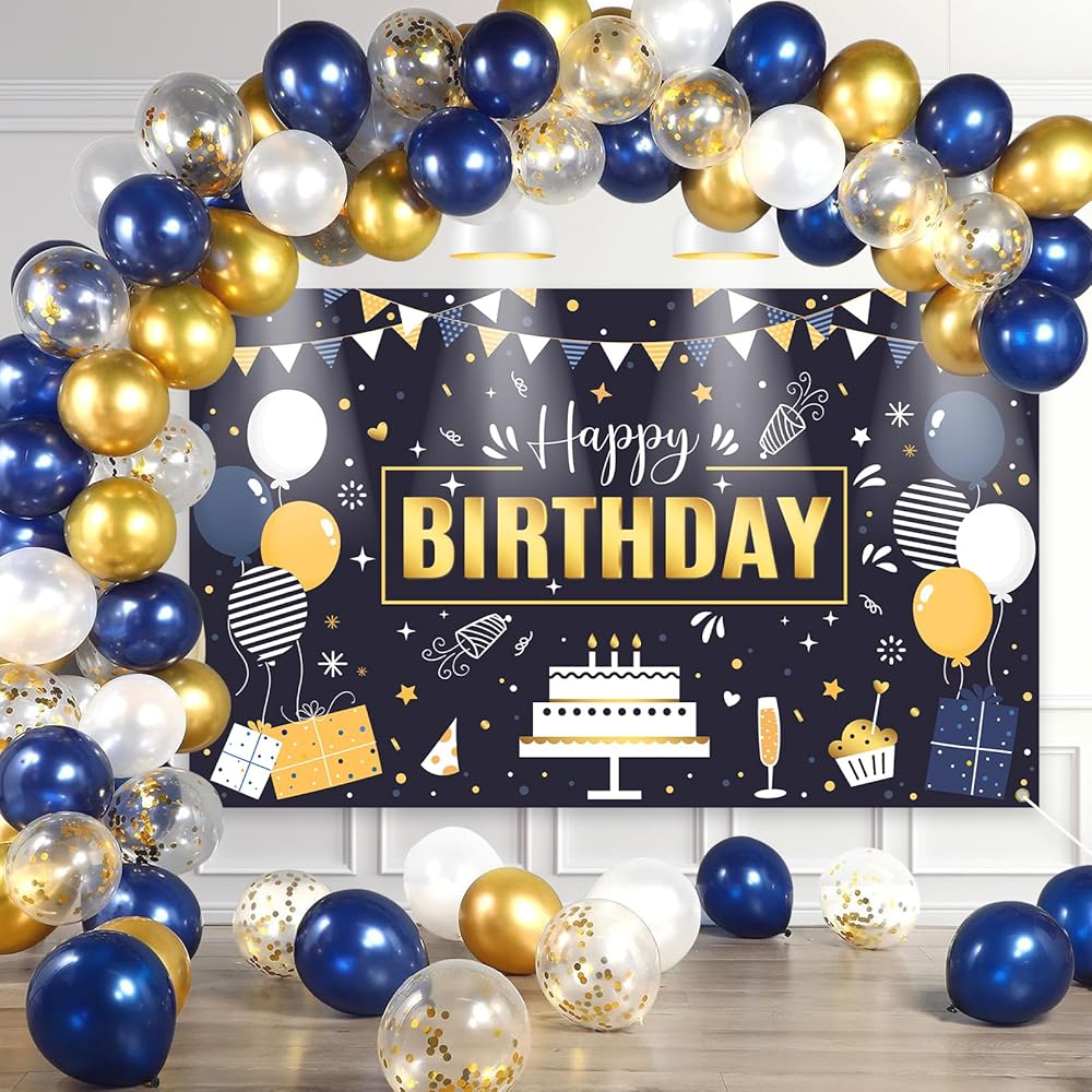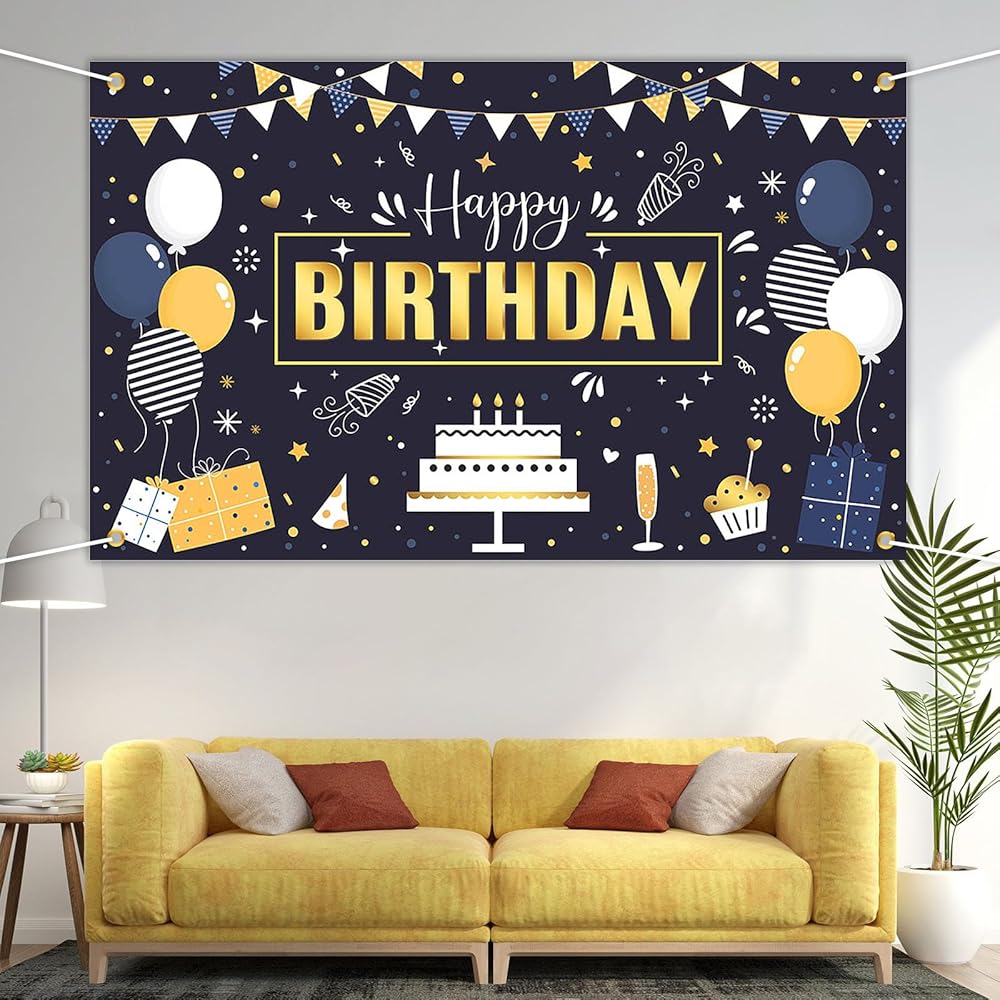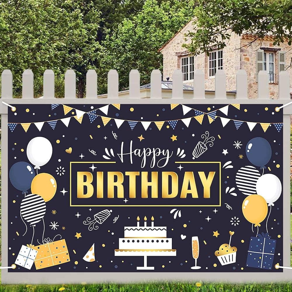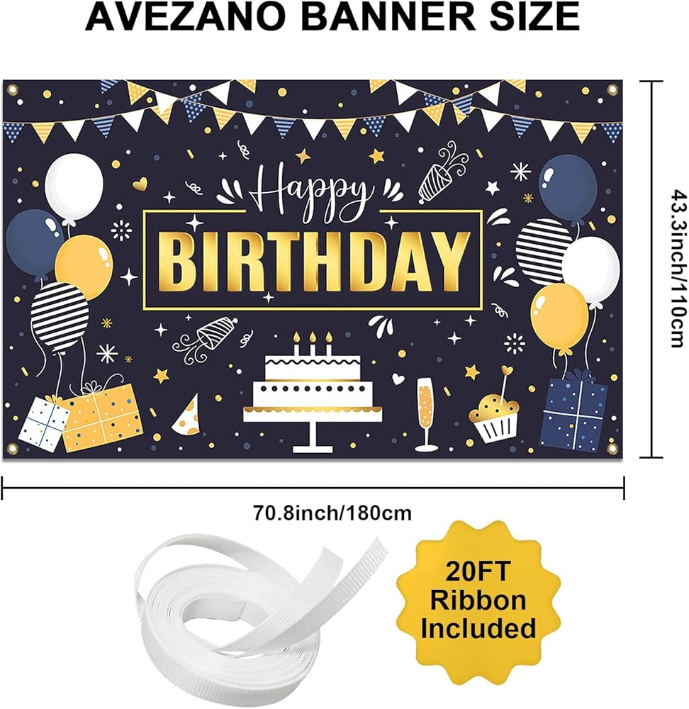 Avezano عيد ميلاد سعيد خلفية راية الأزرق الداكن والذهبي حفلة عيد ميلاد الديكور الأزرق عيد ميلاد سعيد راية للرجال النساء الأطفال الأولاد عيد ميلاد لوازم 70.8 × 43.3 بوصة