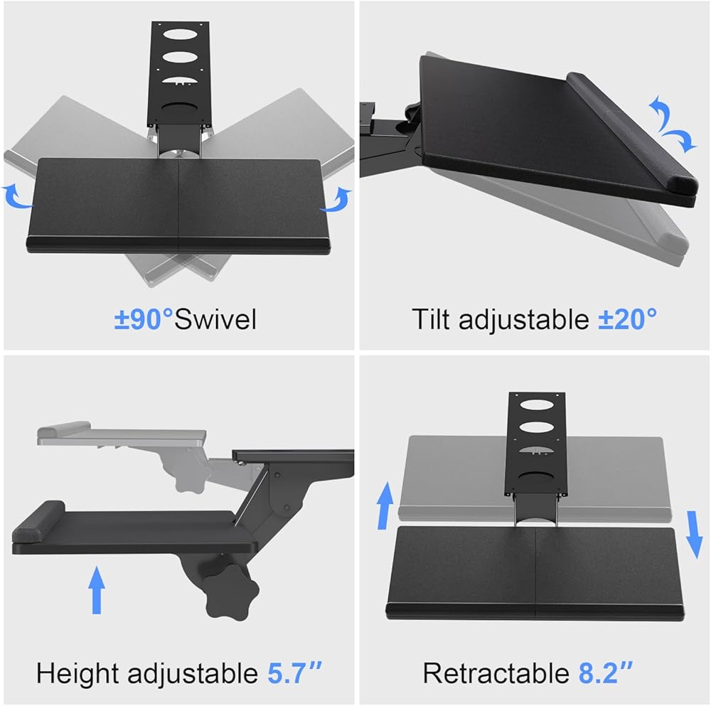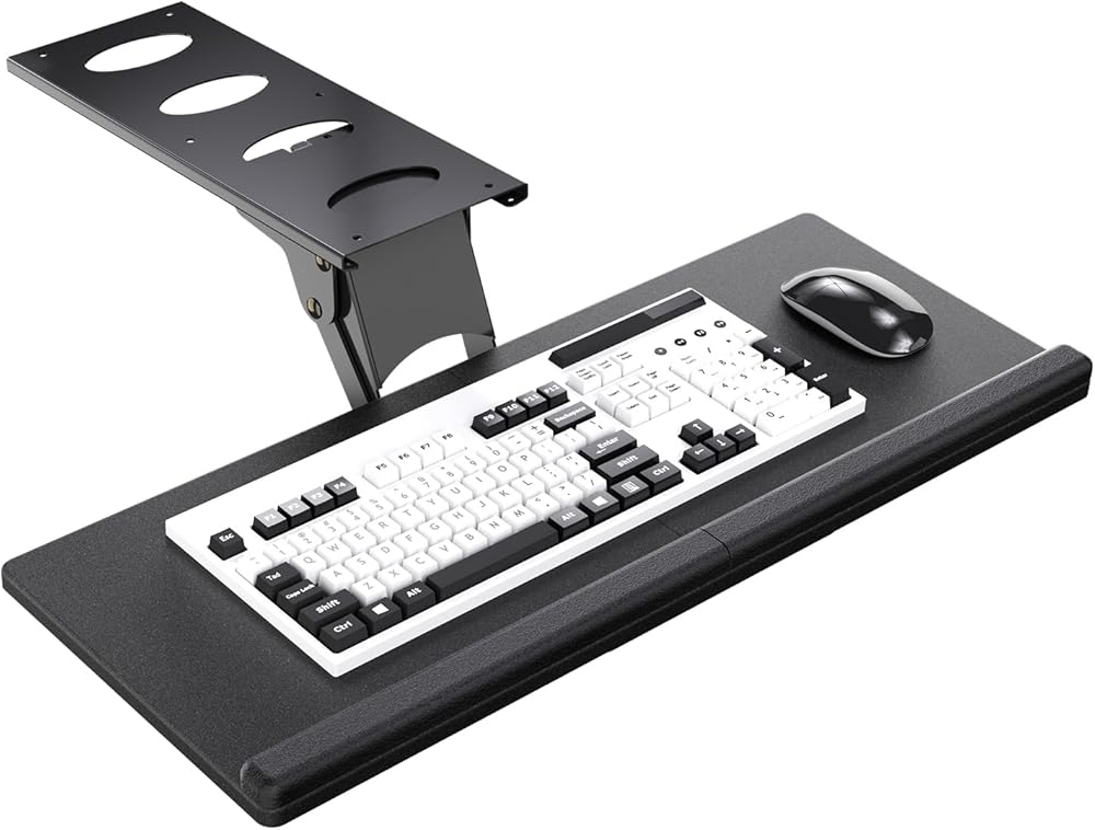 توفير المساحة - يوفر الراحة ومساحة إضافية لسطح المكتب. تنزلق صينية لوحة المفاتيح أسفل المكتب عندما لا تكون قيد الاستخدام.
