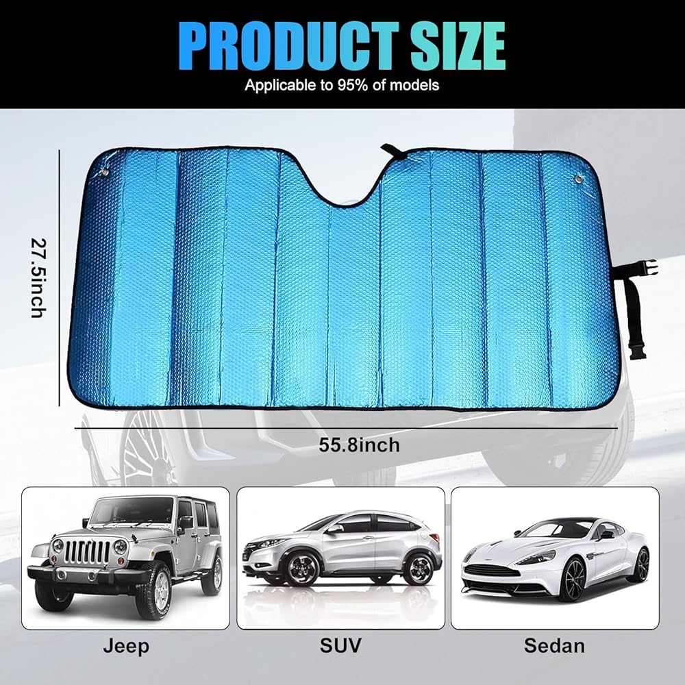 • Universal Fit: This car front windshield sunshade is a universal car accessory and can be reused to extend the service life of car dashboards, steering wheels, chairs, and is suitable for most types of vehicles, such as cars, SUVs, trucks, etc.