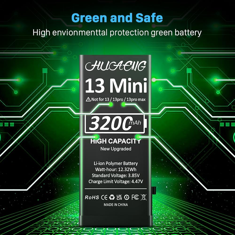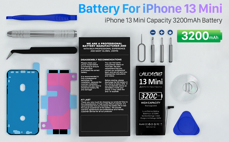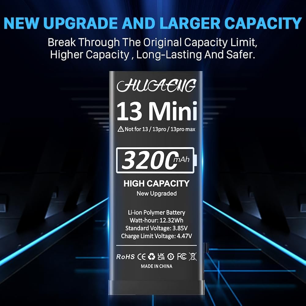 ✈【تصميم طويل الأمد】: تتمتع هذه البطارية البديلة المُحدثة لهاتف iPhone 13 Mini بسعة 3200 مللي أمبير في الساعة، مادة بوليمر ليثيوم أيون، جهد 3.85 فولت، ساعة واط: 12.32 وات في الساعة، أعد عمر بطارية iPhone 13 Mini إلى المجد، احصل على طاقة من 0% إلى 100% في غضون ثوانٍ فقط عن طريق تبديل البطاريات.