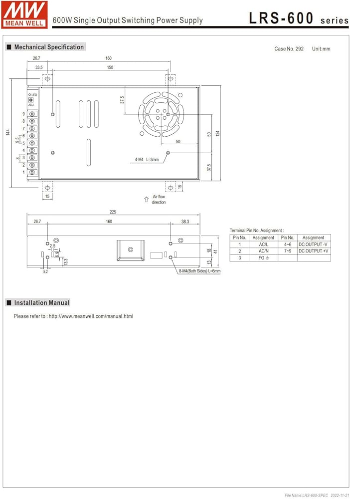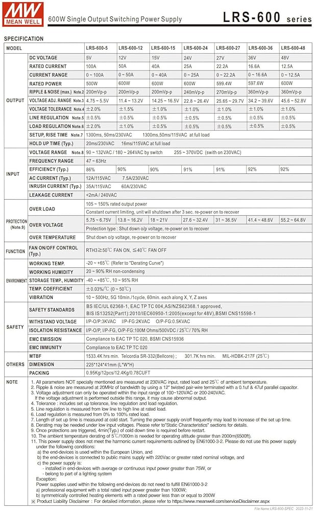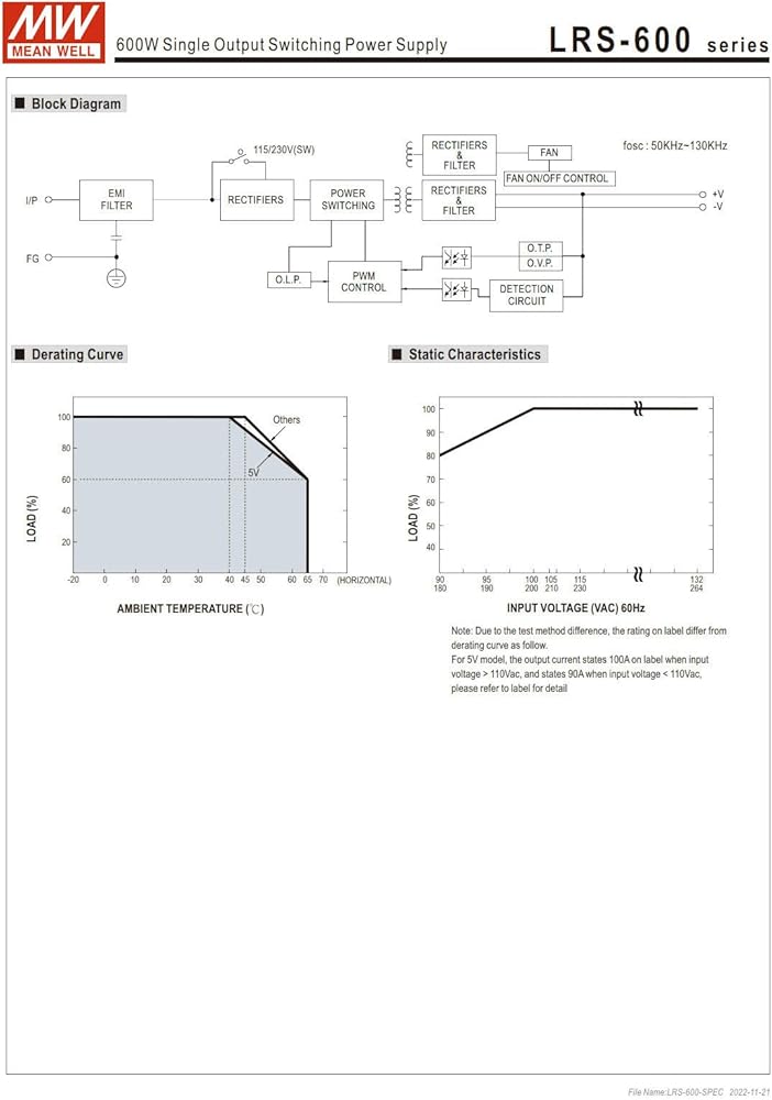 LRS-600 series is a 600W single output enclosed type power supply with 1.6 inch of low profile design. Adopting the input of 115VAC or 230VAC(Select by switch). In addition to the high efficiency up to 92%, with built in long life fan, LRS-600 can work under 35F-140F with full load.
