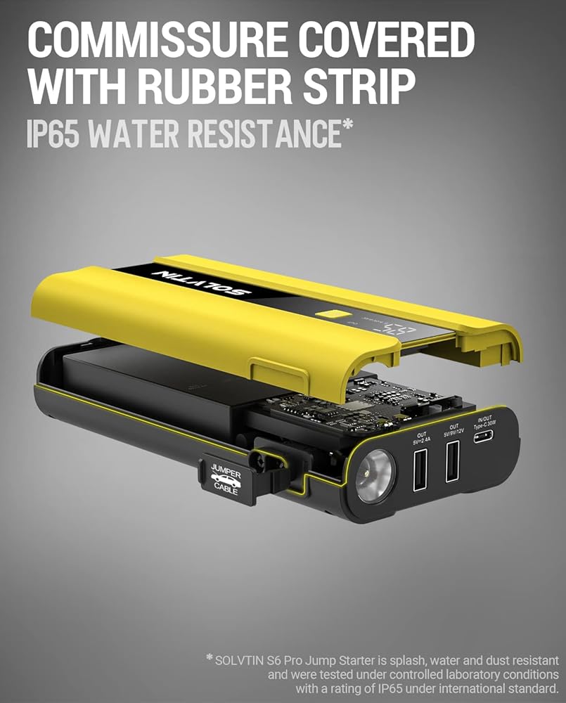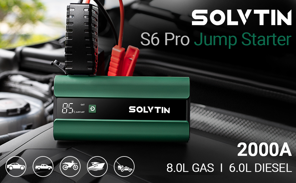 أداء قفز قوي: مع تيار ذروة 2000 أمبير، يمكن لجهاز تشغيل القفز SOLVTIN S6 Pro تشغيل السيارة بما يصل إلى 8 لتر من الغاز و6 لتر من محركات الديزل في ثوانٍ حوالي 20 مرة عند الشحن الكامل. مناسبة لمعظم سيارات الركاب 12 فولت. يمكن أن يعمل في درجة حرارة -4 درجة ~ 104 درجة فهرنهايت، حتى في أي طقس قاسٍ.