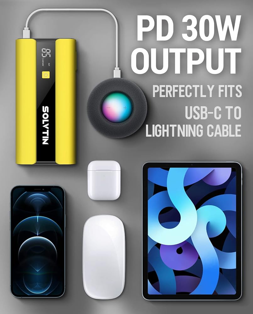 ما تحصل عليه: SOLVTIN S6 Pro Jump Starter x 1، كابلات التوصيل الذكية x 1، كابل USB-C إلى C x 1، كابل USB-A إلى C x 1، (يتكيف مع جميع شواحن الهواتف)، شاحن حائط سريع QC18W x 1 ، حقيبة حمل EVA × 1، دليل المستخدم × 1، ضمان لمدة عامين × 1. فريق ما بعد البيع محترف عبر الإنترنت لجميع مشكلاتك.
