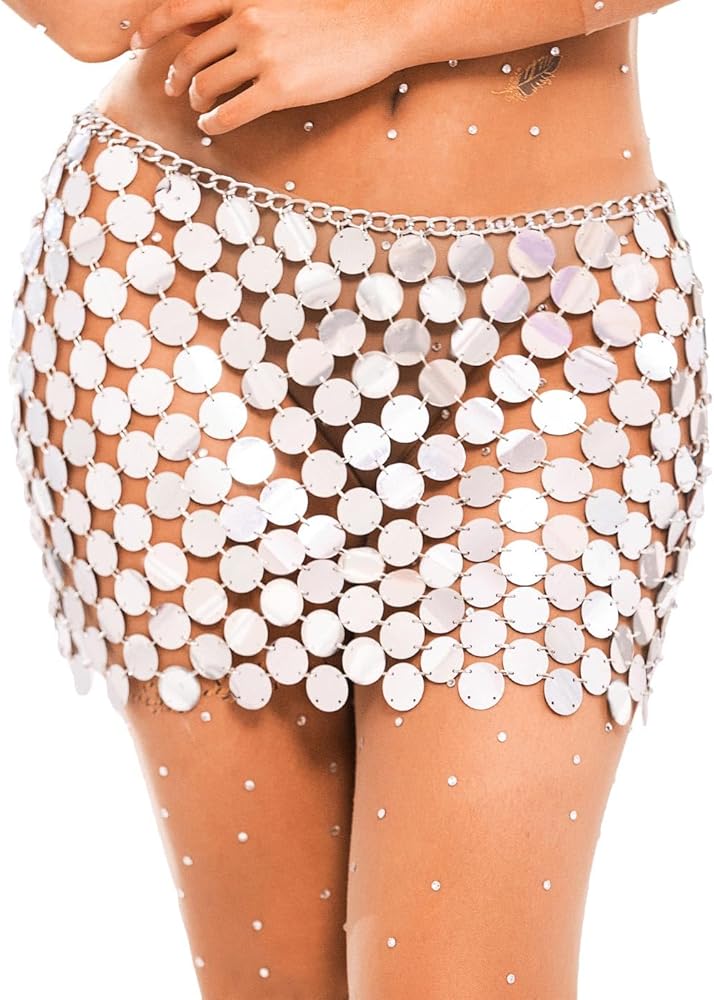 تنورة Asooll ذات النقاط البراقة بالترتر والتنانير الفضية للرقص والديسكو للنساء