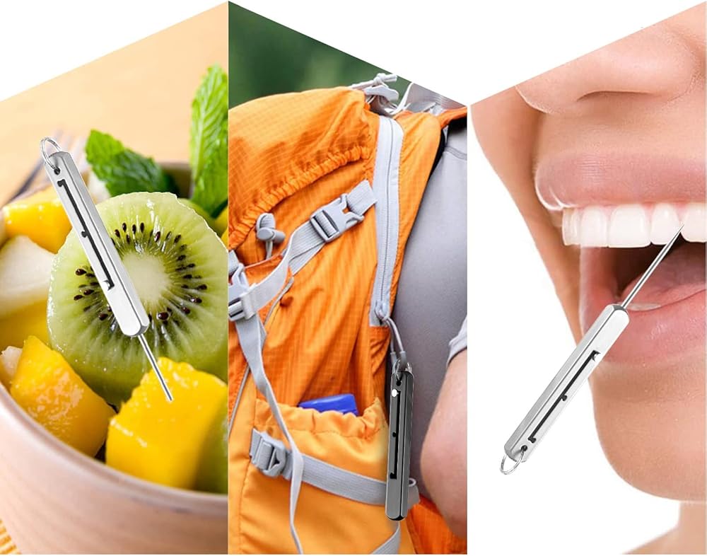 *عود أسنان متعدد الوظائف* - يمكن استخدام عود الأسنان كعود أسنان عملي للفاكهة. سوف يساعدونك على فتح فتحة البطاقة على هاتفك. تنظيف أي جزيئات متبقية تبقى في فمك. كما أنها مناسبة للتخييم والمشي لمسافات طويلة والنزهات وركوب الدراجات والسفر والمزيد.