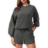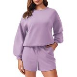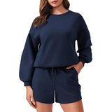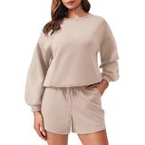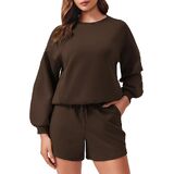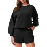 ميزات : هذه المجموعة المكونة من قطعتين مصممة بلوز طويل الأكمام وسروال قصير برباط مطاطي، ويمكن أيضًا ارتداء الجزء العلوي والسفلي بشكل منفصل