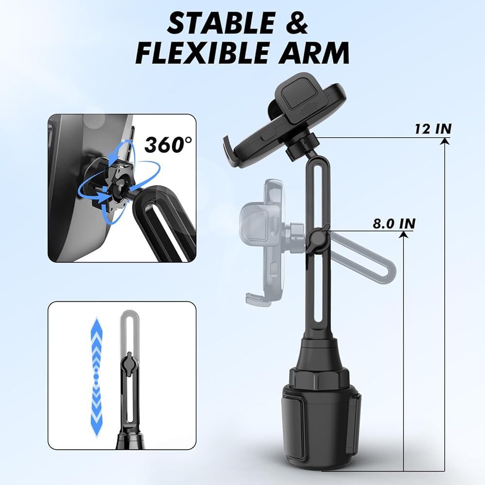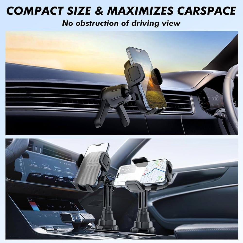 • ✅[تركيب سهل وسريع] ما عليك سوى إدخال الحامل في حامل أكواب سيارتك وضبط القاعدة لتناسب بشكل آمن. لا توجد حاجة لأي أدوات أو معدات إضافية، سهلة التشغيل بيد واحدة، مما يجعلها خالية من المتاعب في التركيب.