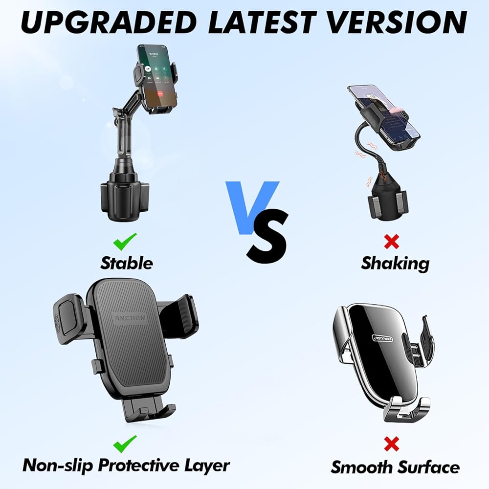 • 🔥[تصميم مضاد للانزلاق ومقاوم للصدمات] يتميز حامل الهاتف ببطانة سيليكون ناعمة على حامل الهاتف وعروات مطاطية على حامل الكوب، مما يمنع أي خدوش أو تلف لهاتفك أو الزجاجة، مع تقليل الاهتزازات أثناء ركوب السيارة، مما يوفر قبضة آمنة ومستقرة.